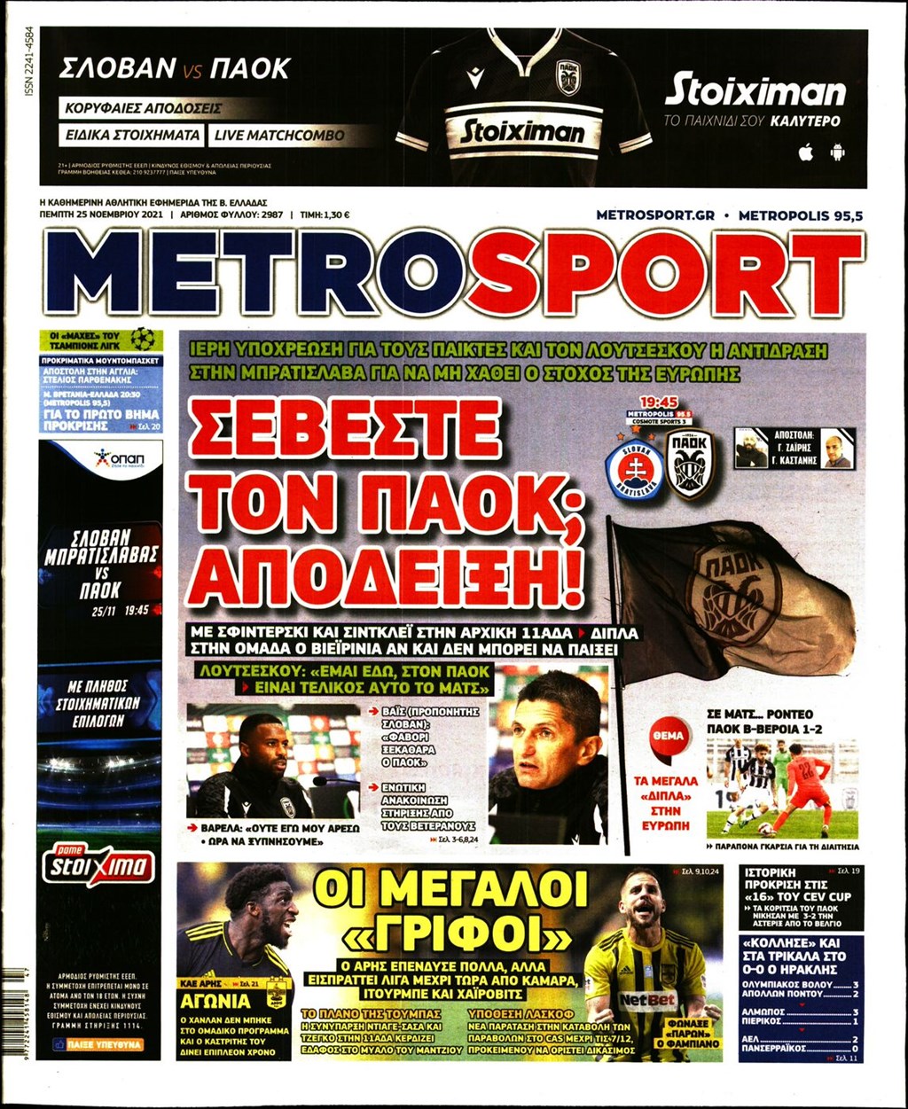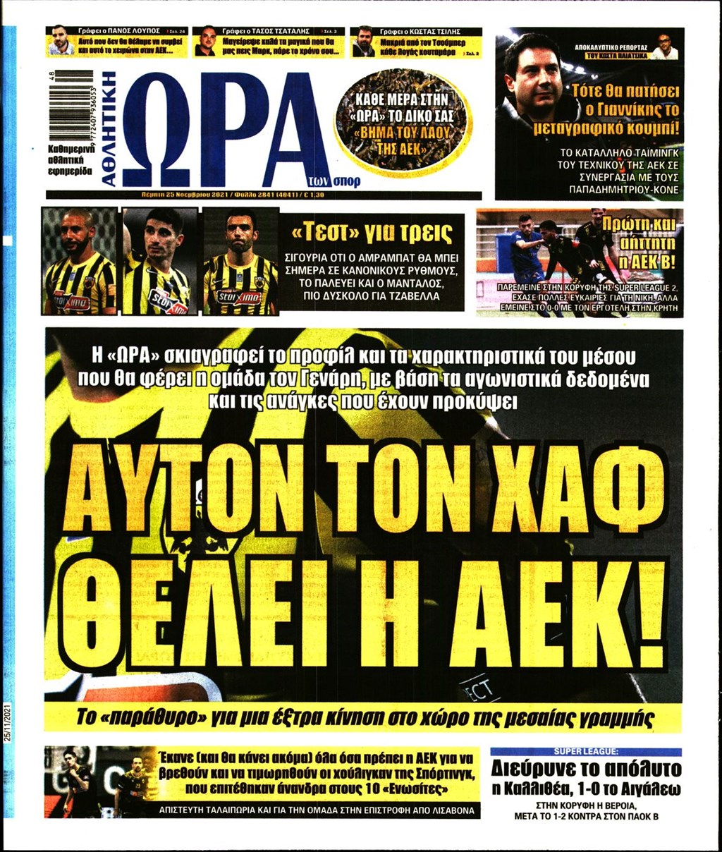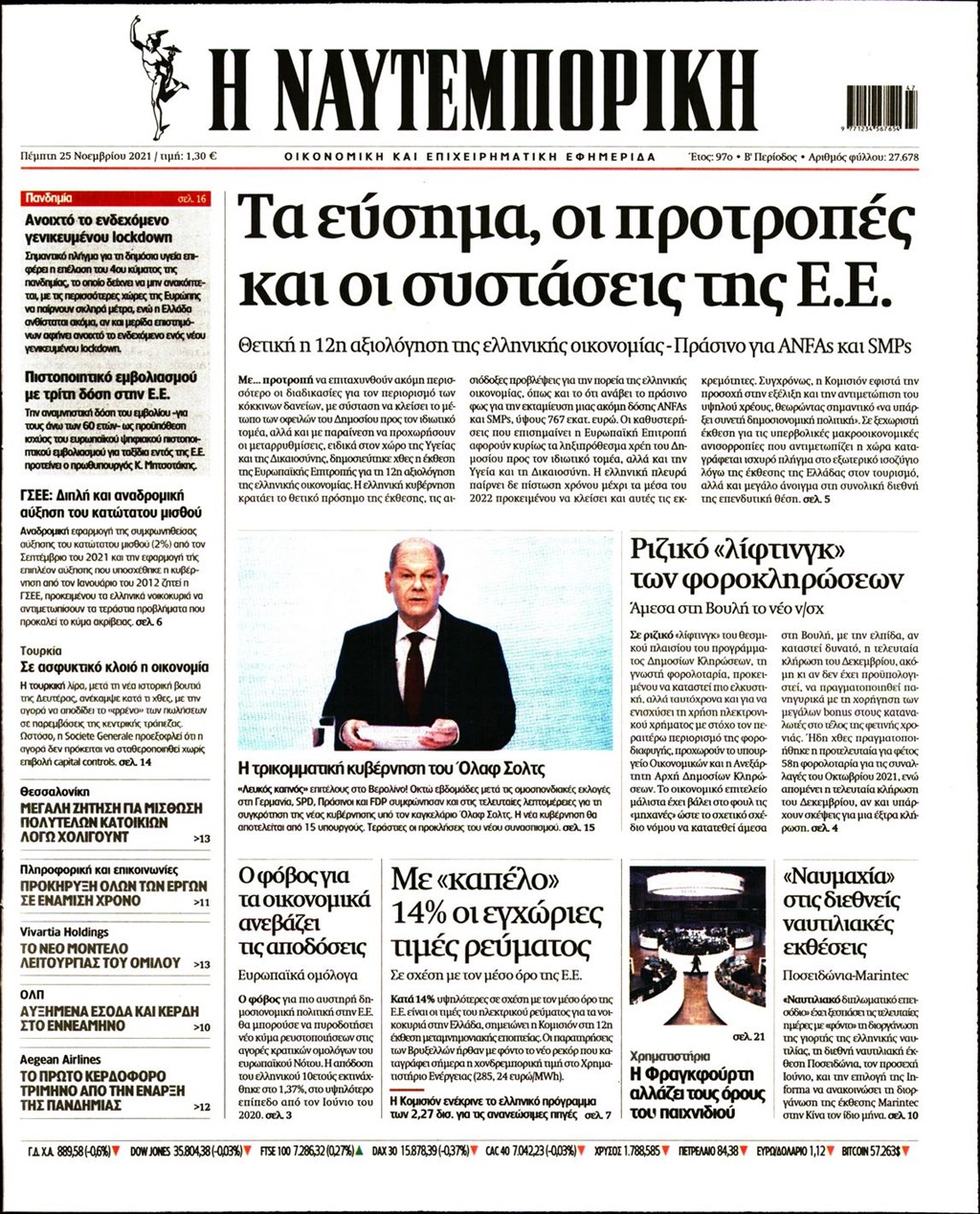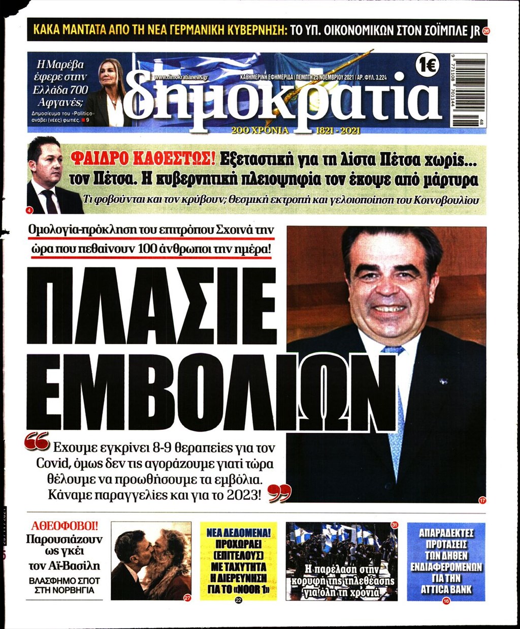 Τα πρωτοσέλιδα των εφημερίδων 25 Νοεμβρίου