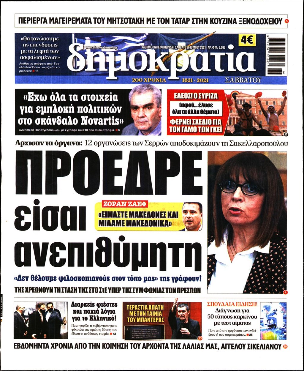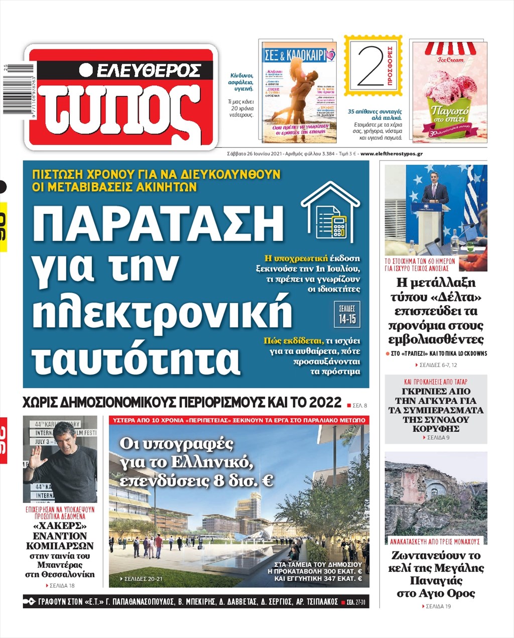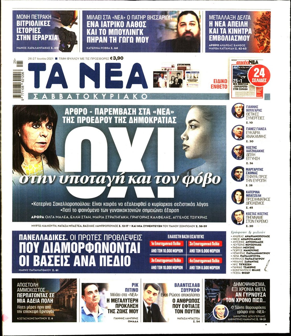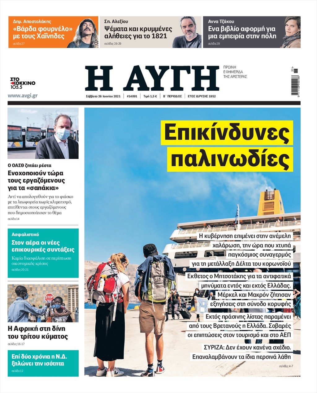 Τα πρωτοσέλιδα των εφημερίδων 26 Ιουνίου