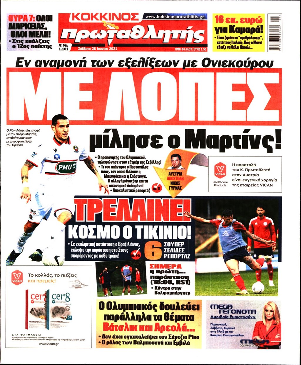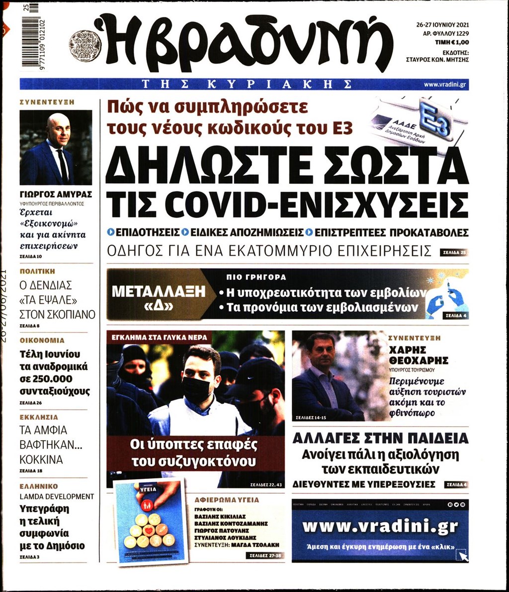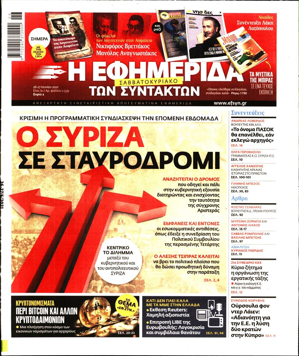 Τα πρωτοσέλιδα των εφημερίδων 26 Ιουνίου