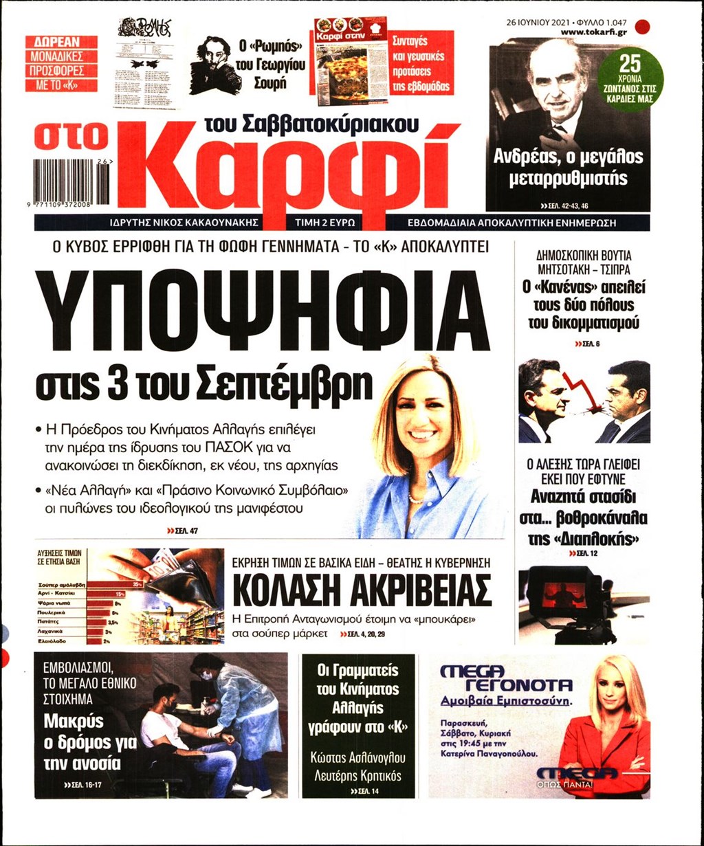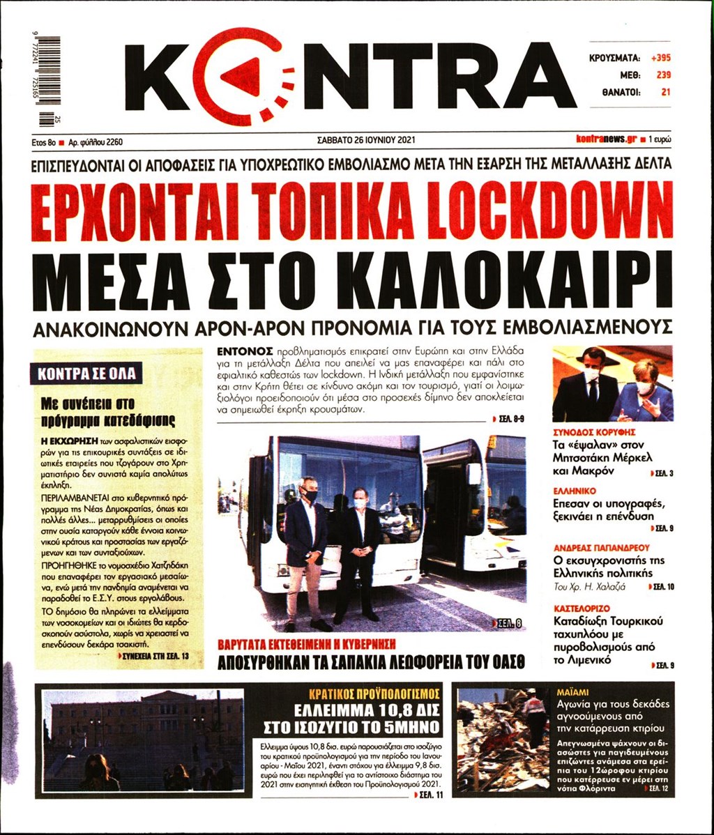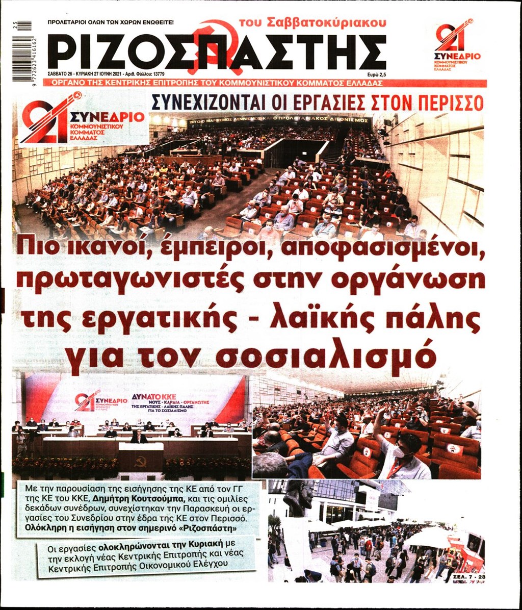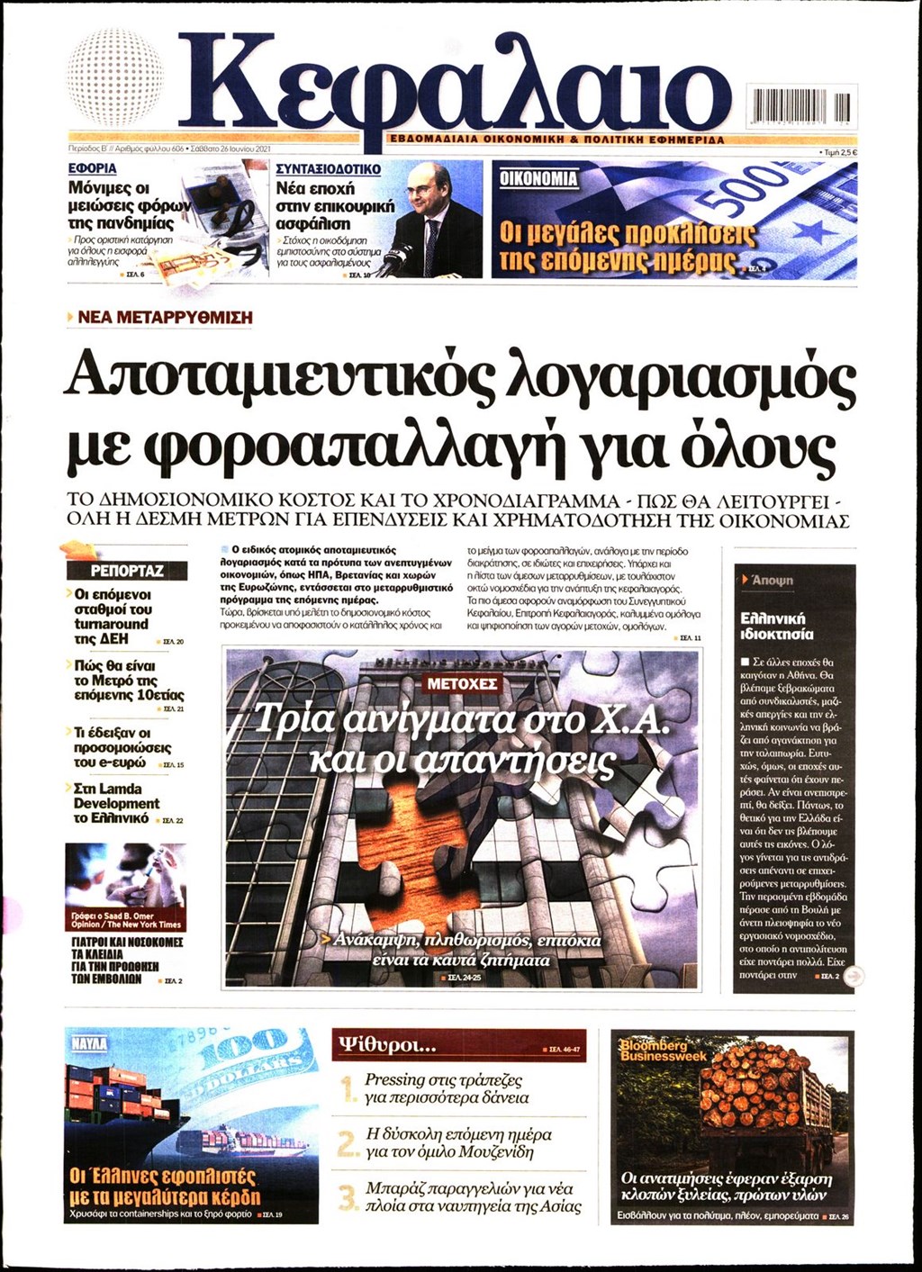 Τα πρωτοσέλιδα των εφημερίδων 26 Ιουνίου