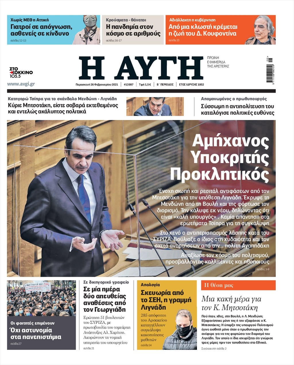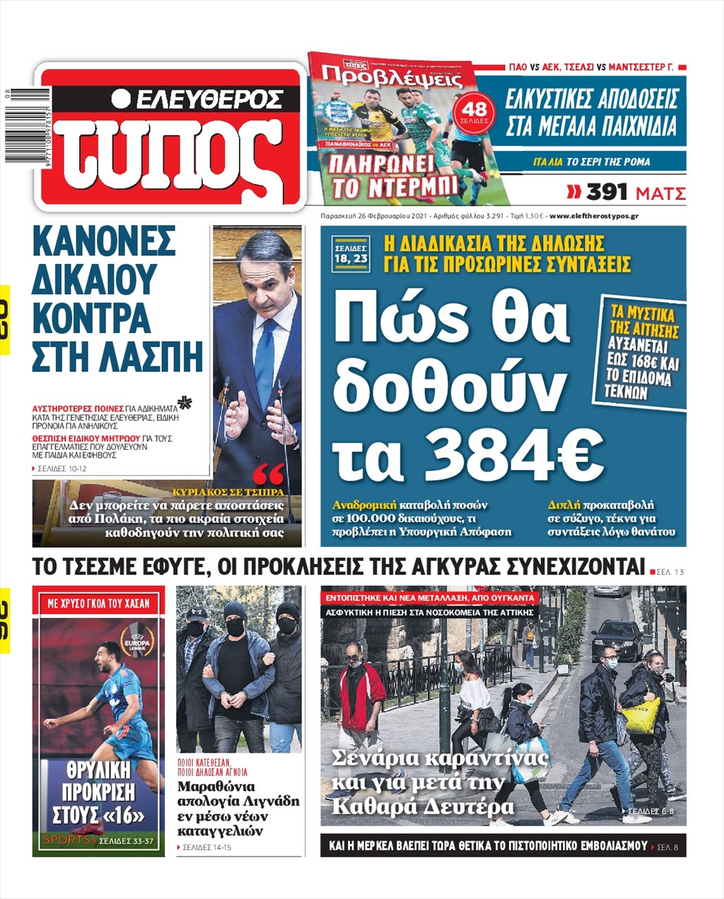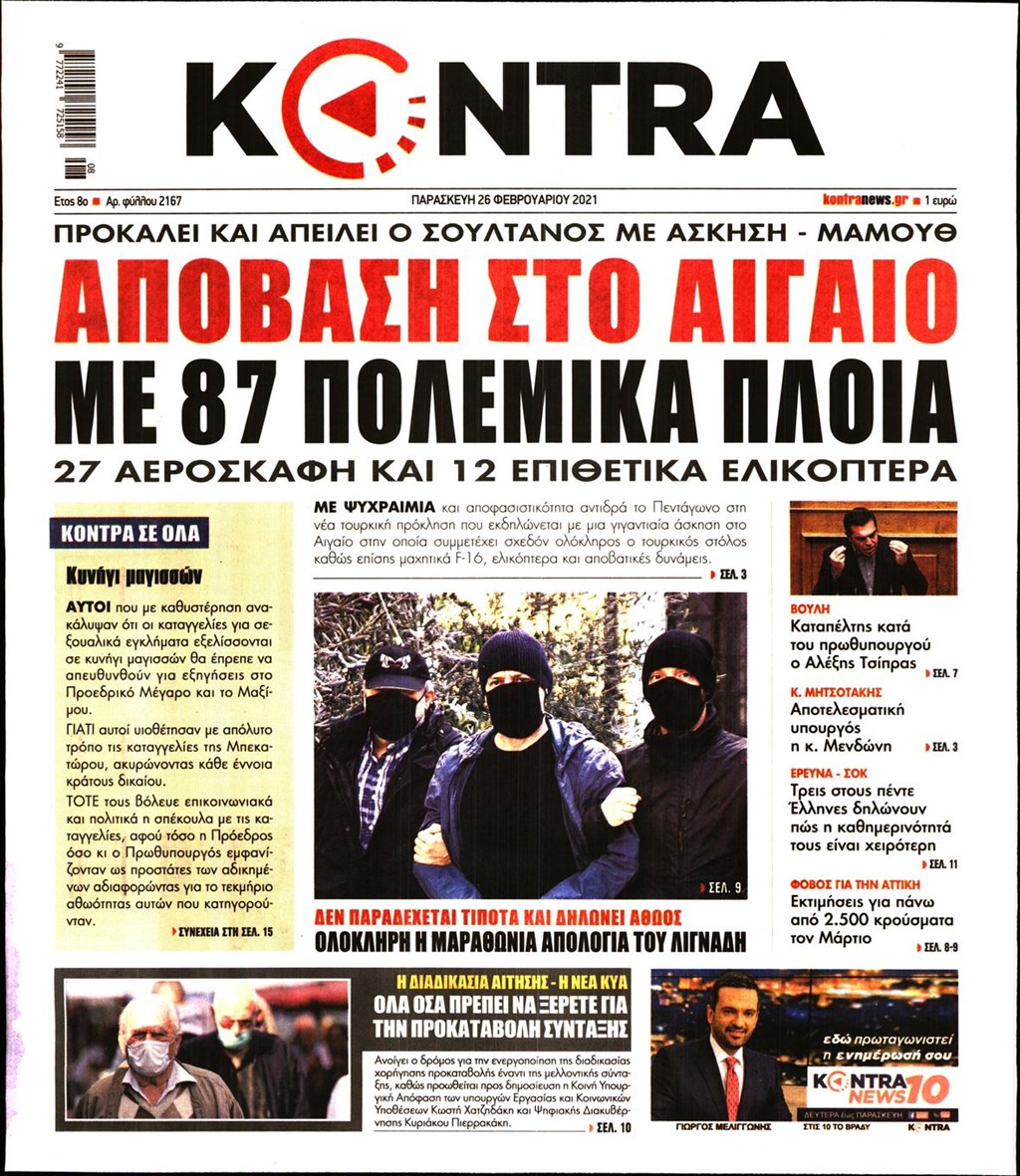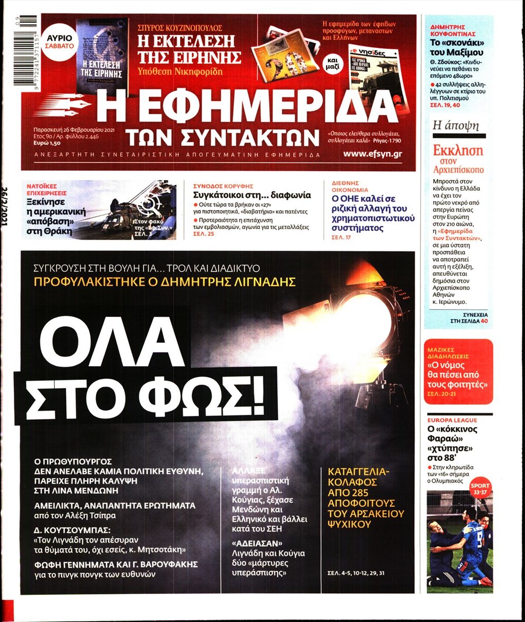 Τα πρωτοσέλιδα των εφημερίδων 26 Φεβρουαρίου