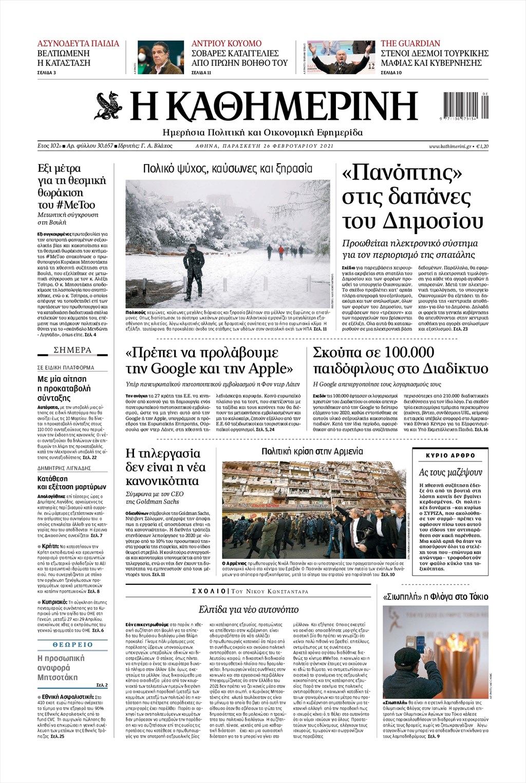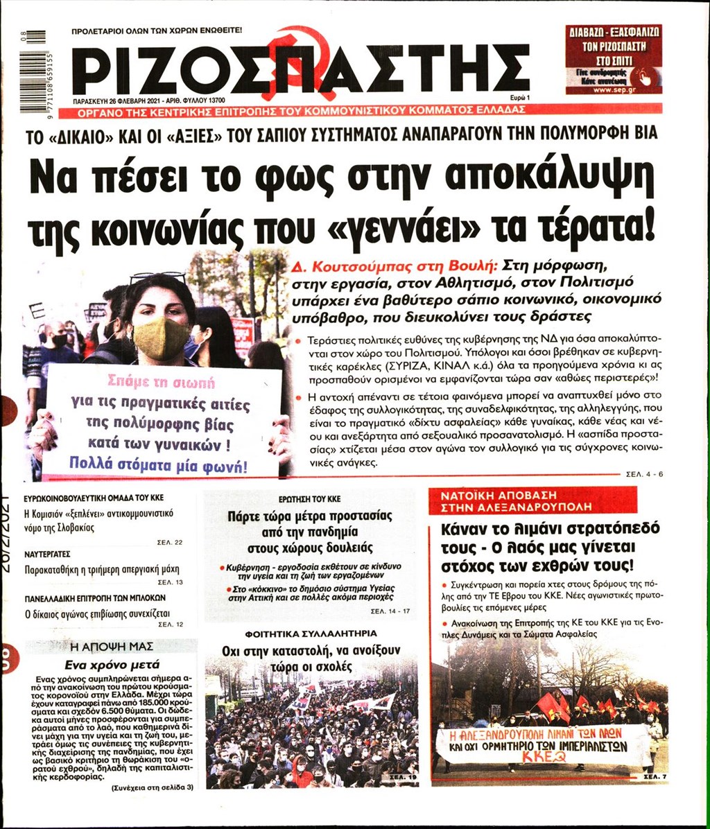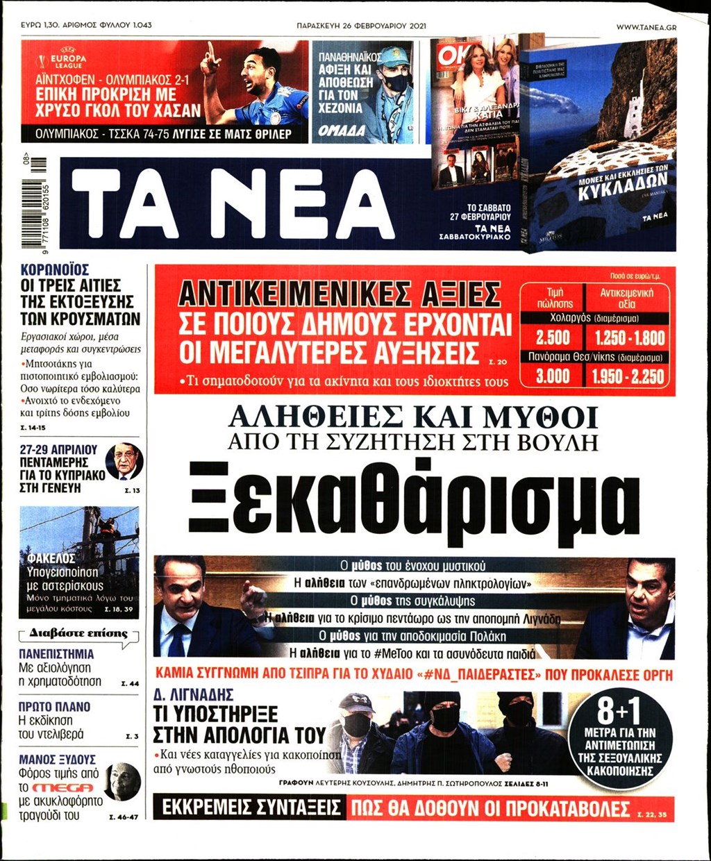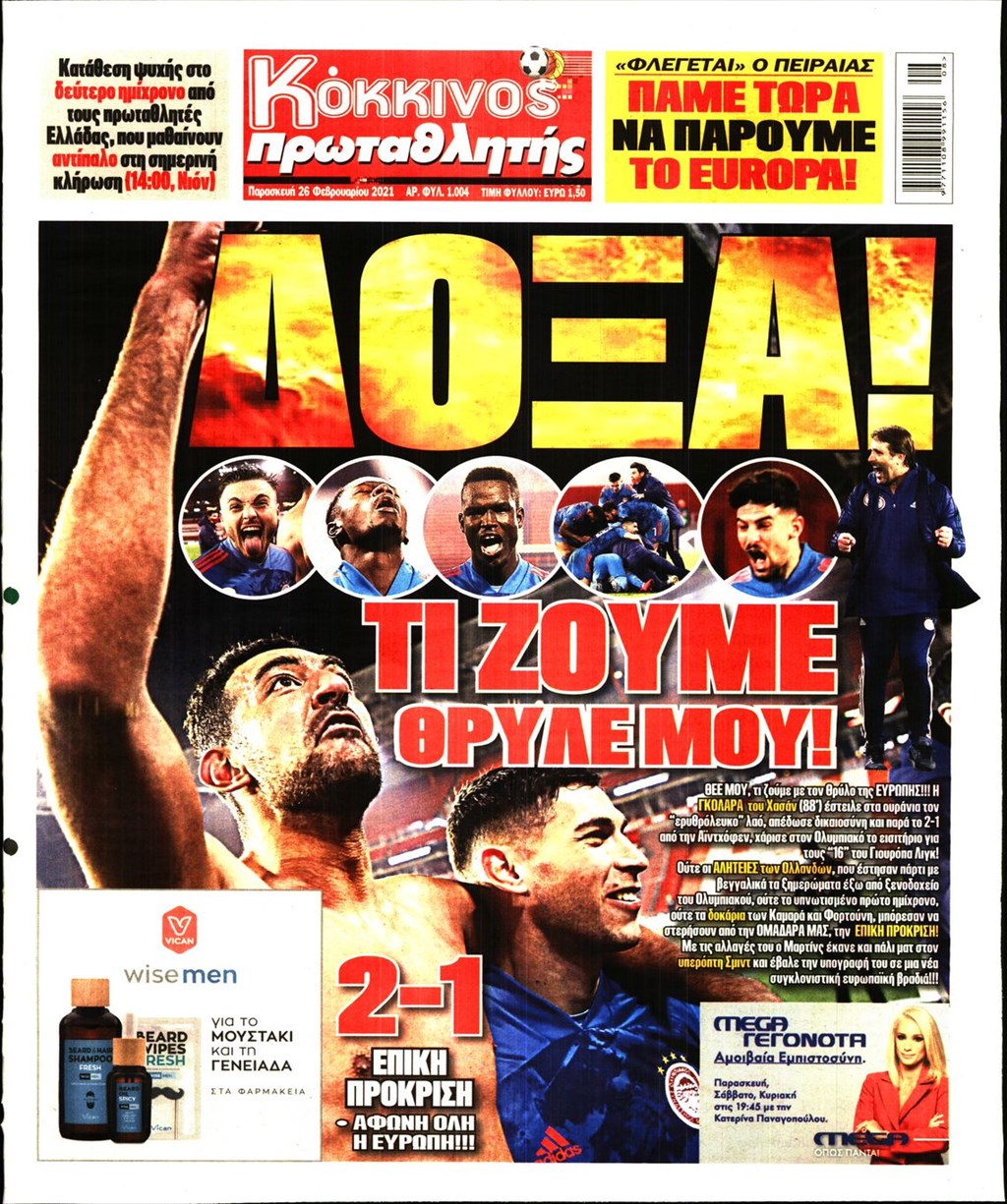 Τα πρωτοσέλιδα των εφημερίδων 26 Φεβρουαρίου