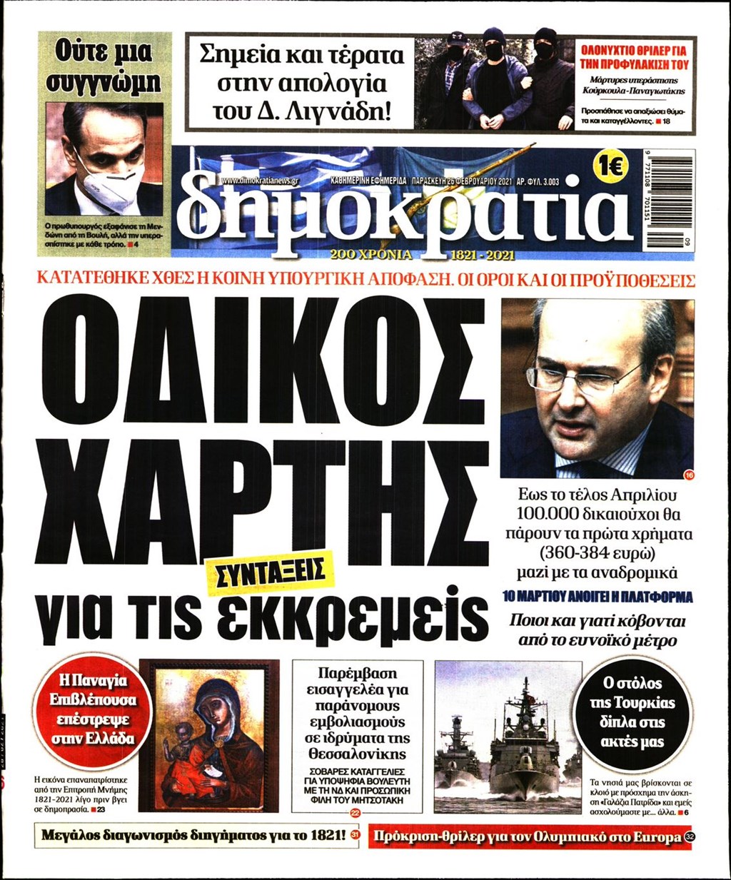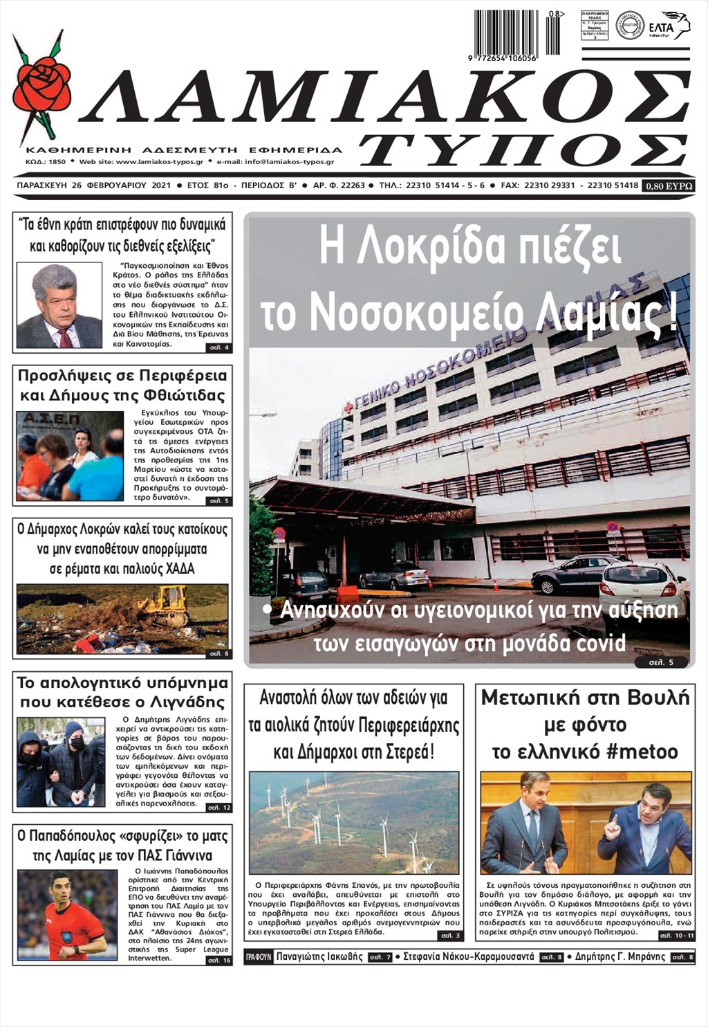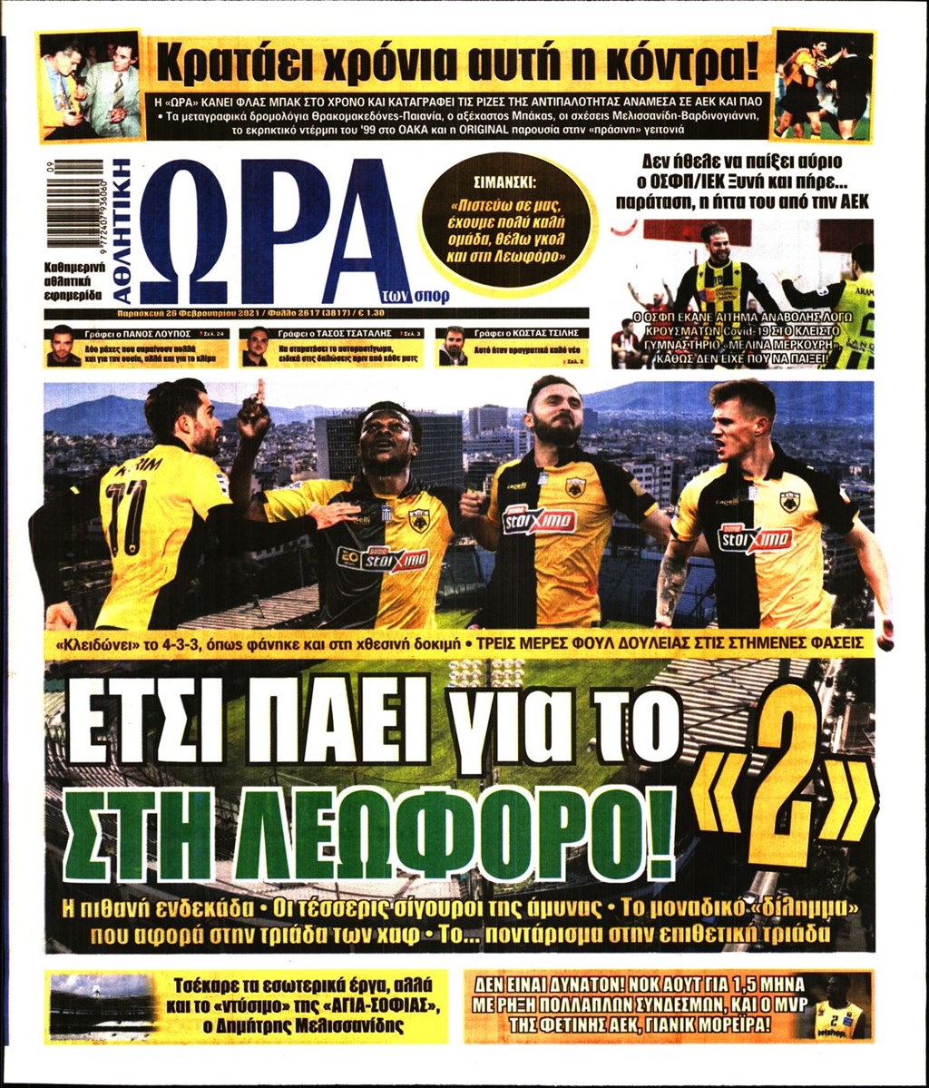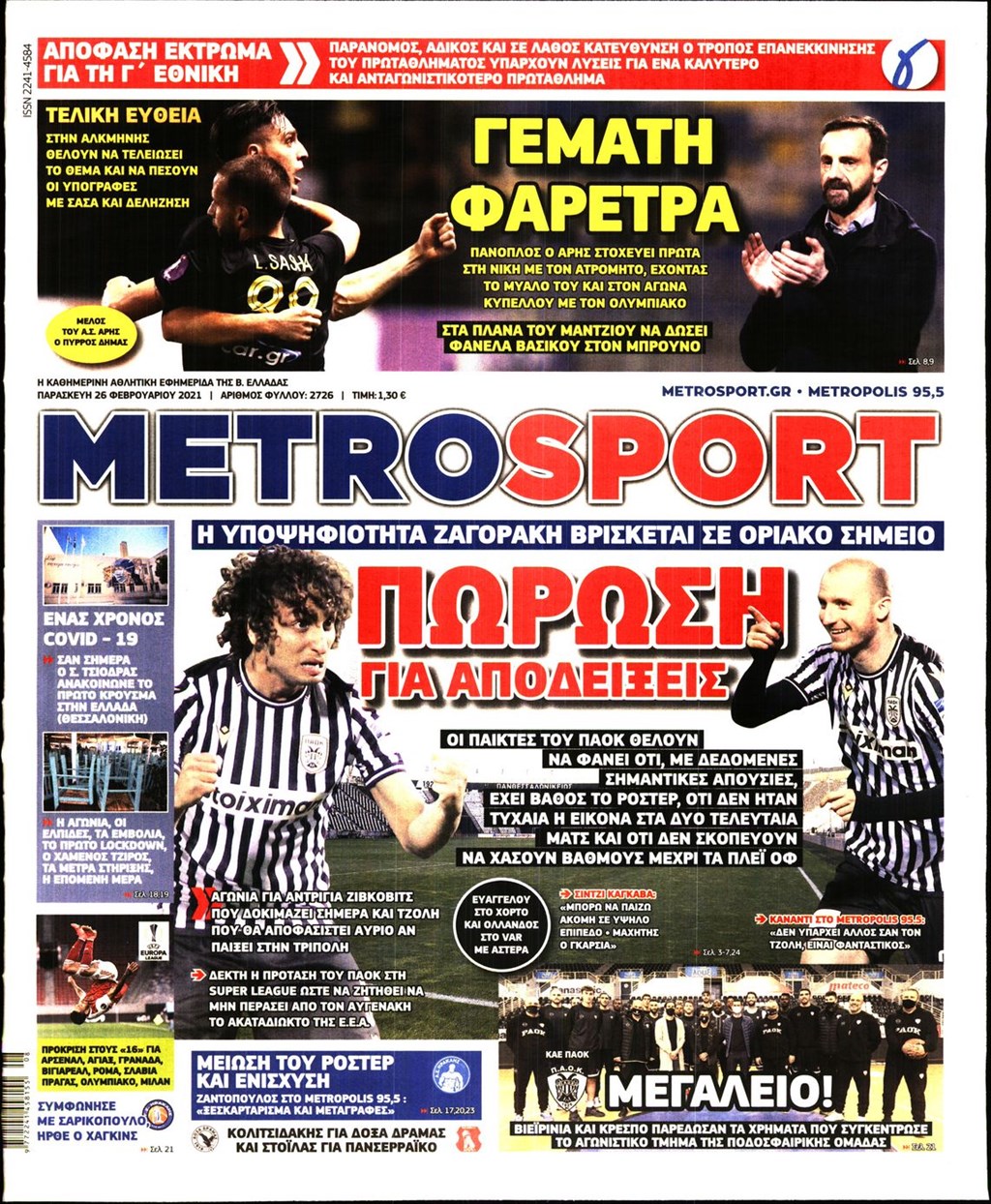 Τα πρωτοσέλιδα των εφημερίδων 26 Φεβρουαρίου