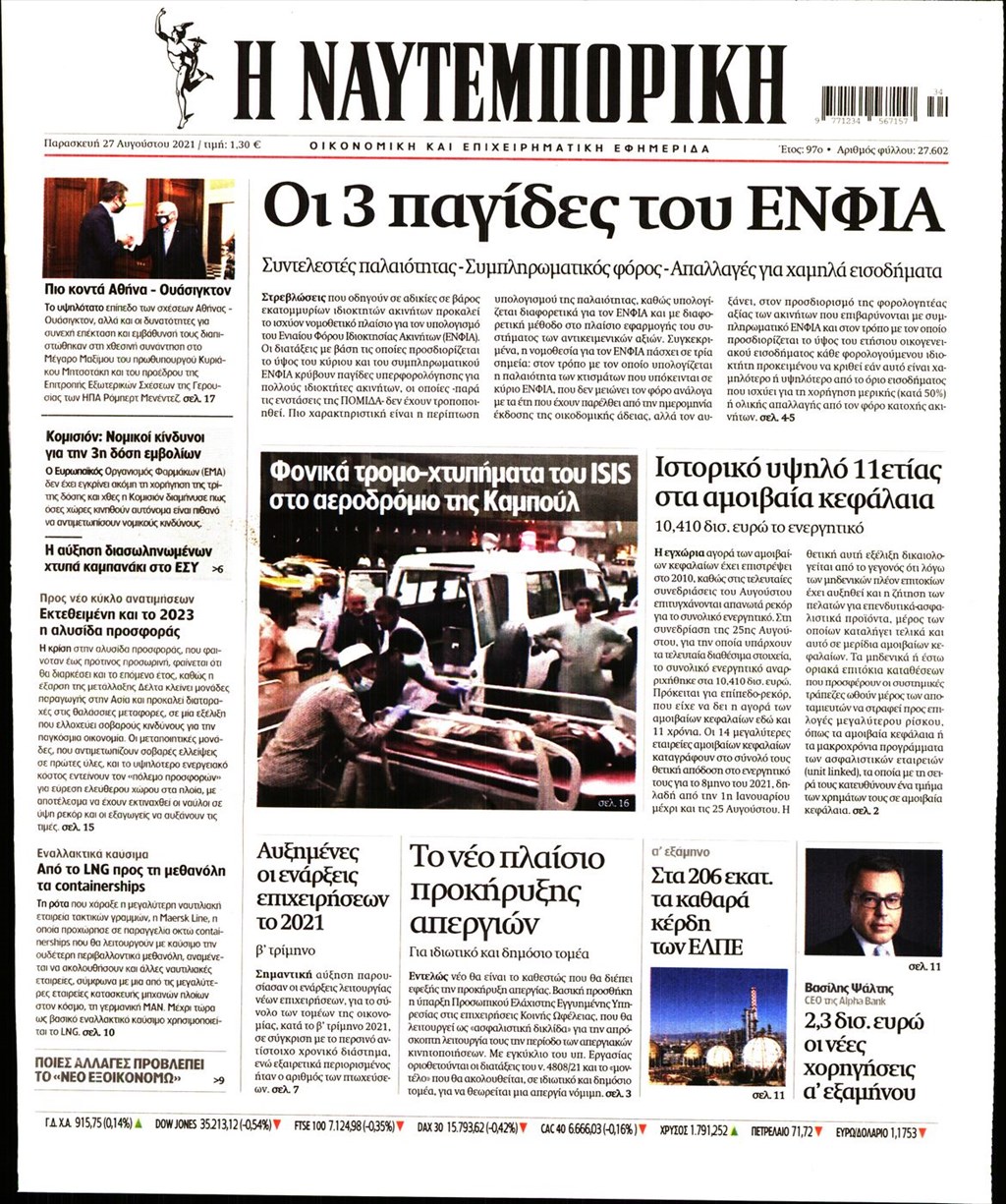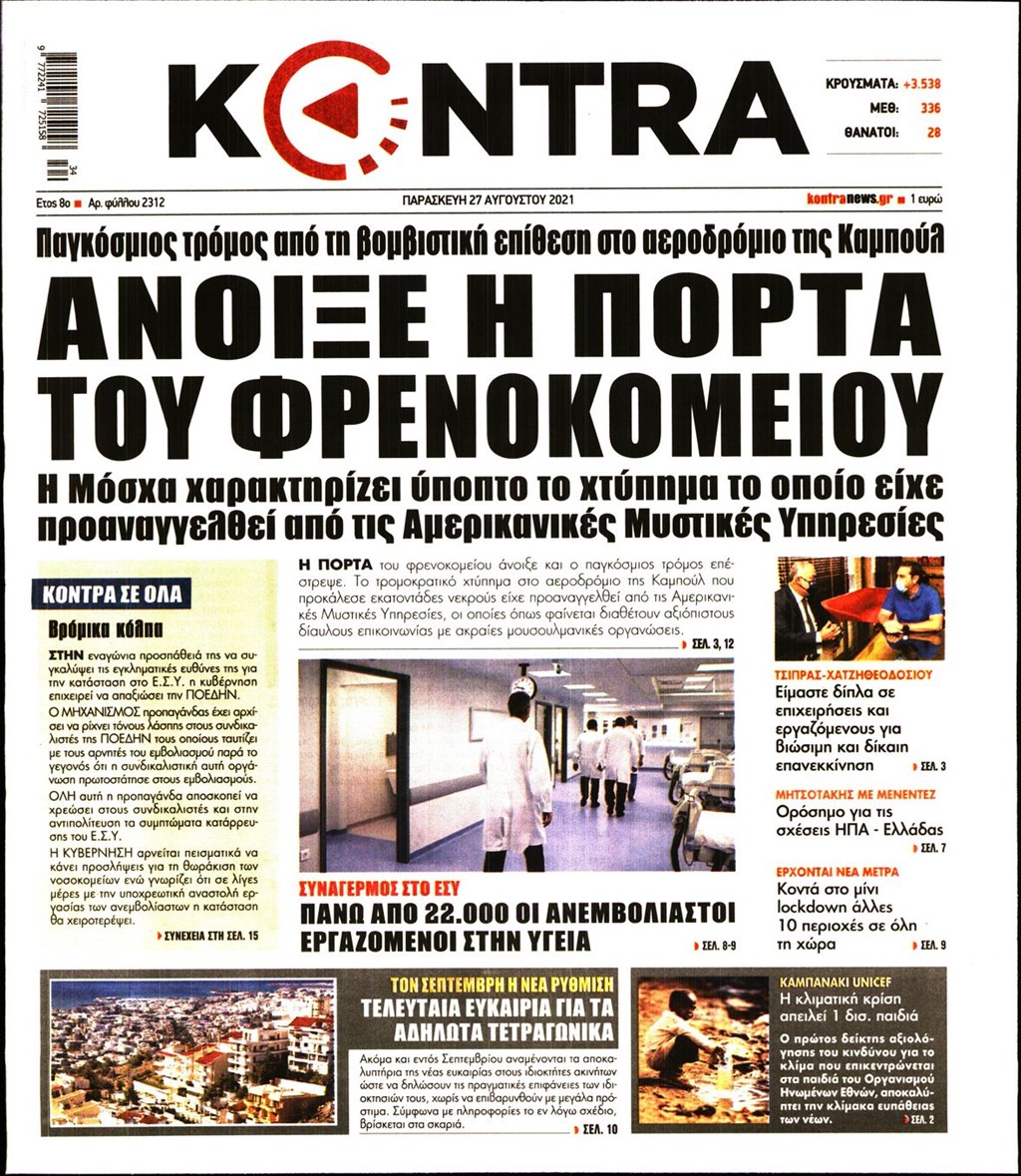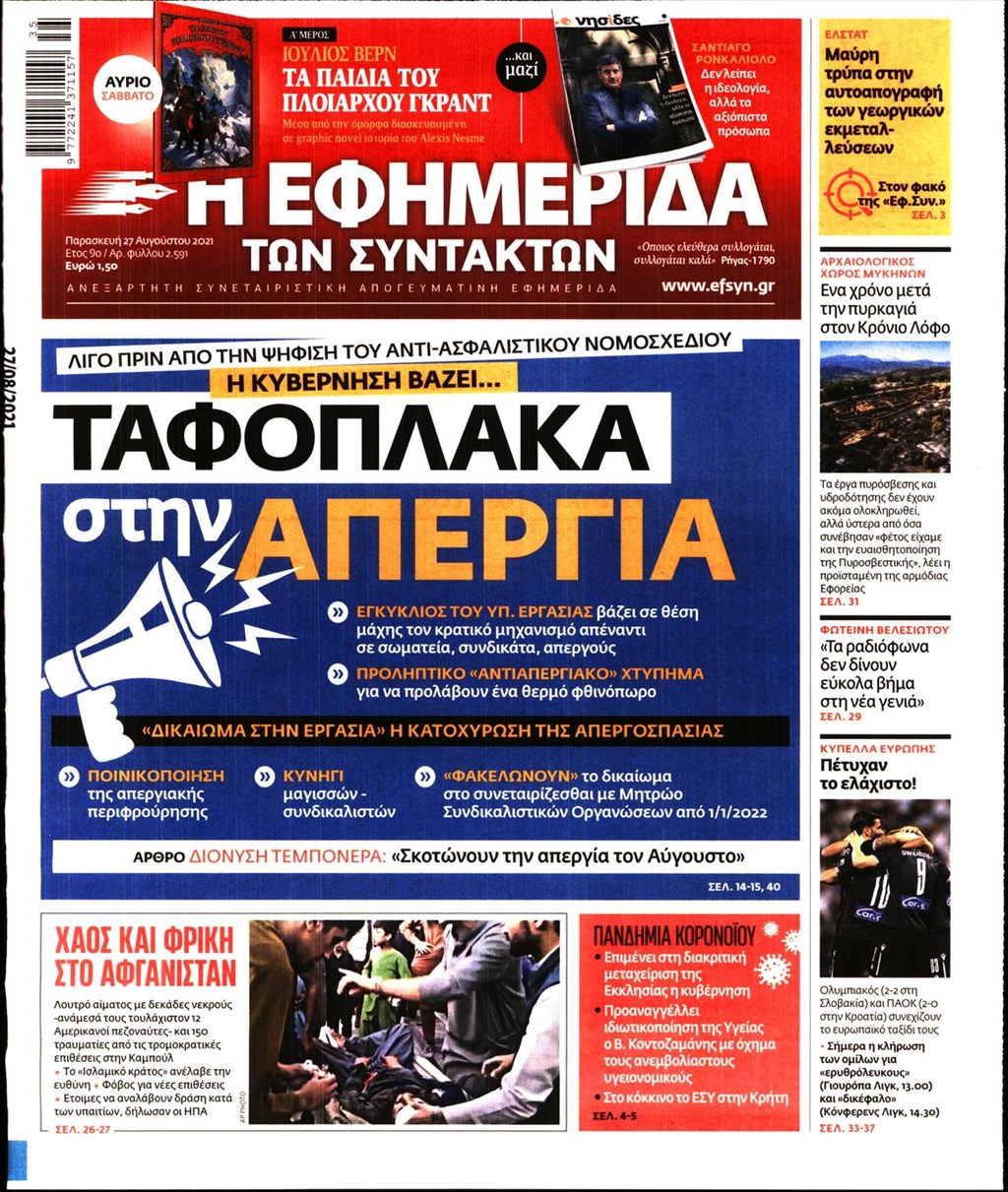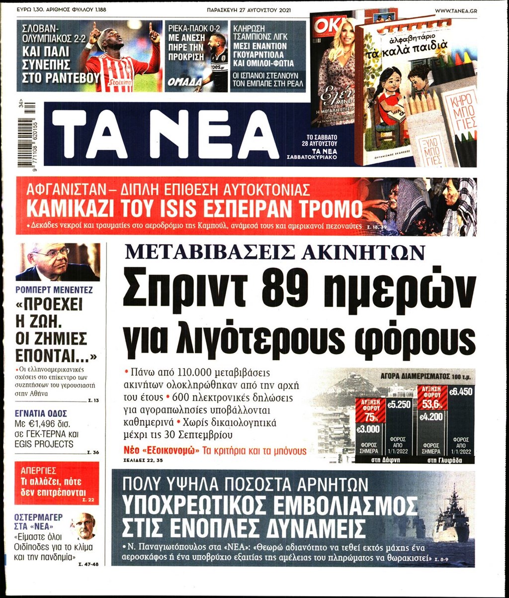 Τα πρωτοσέλιδα των εφημερίδων 27 Αυγούστου