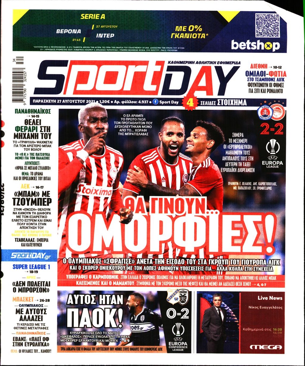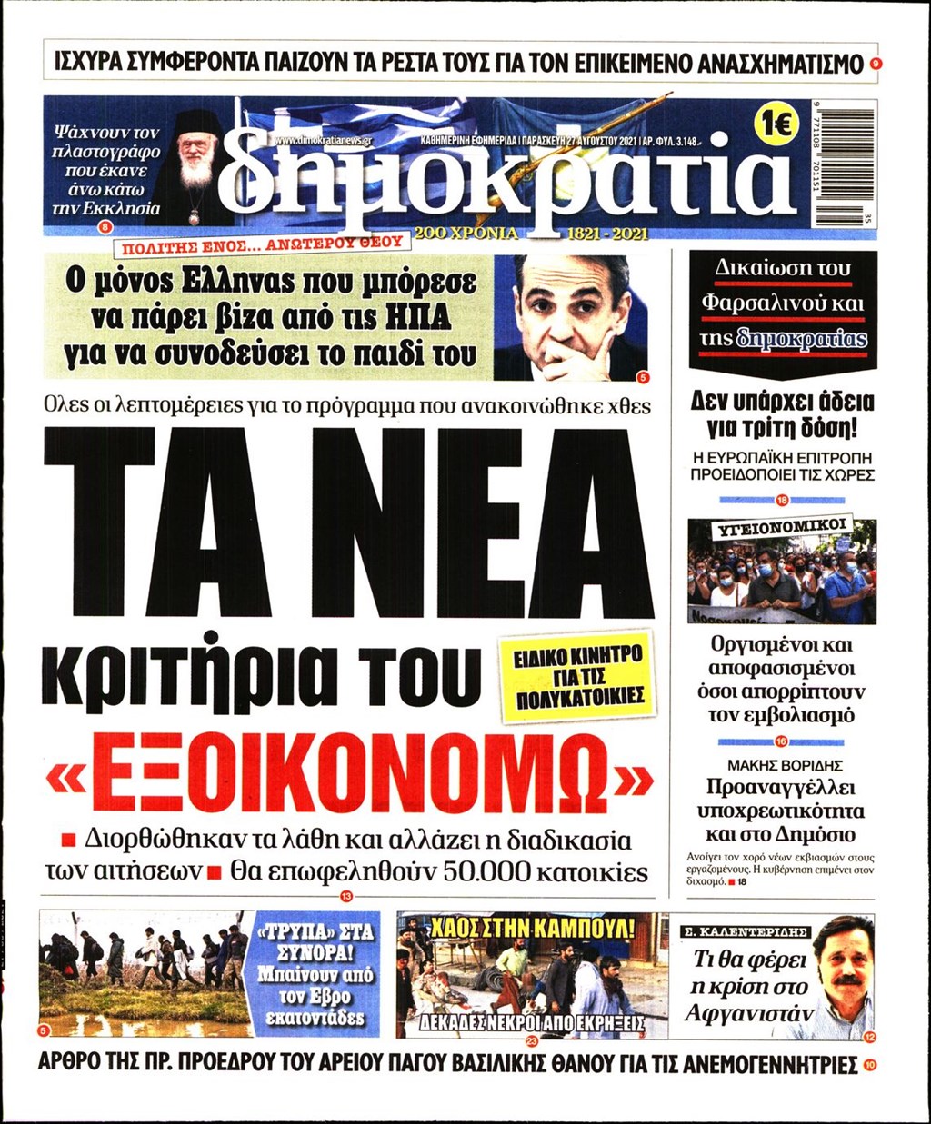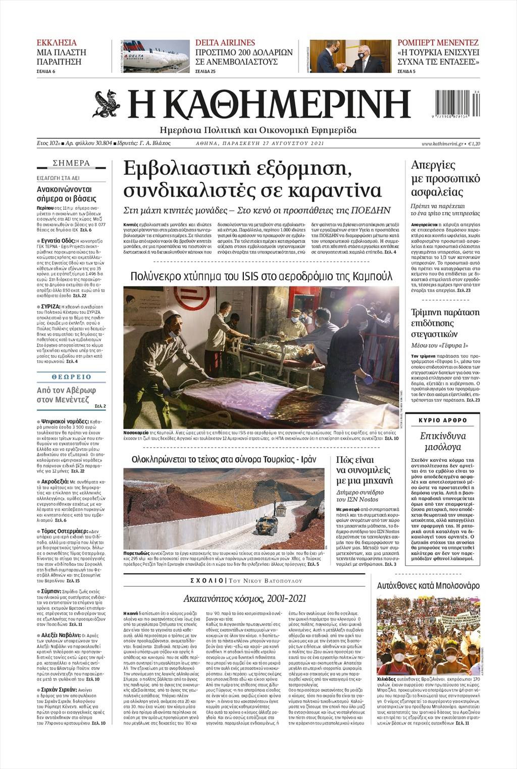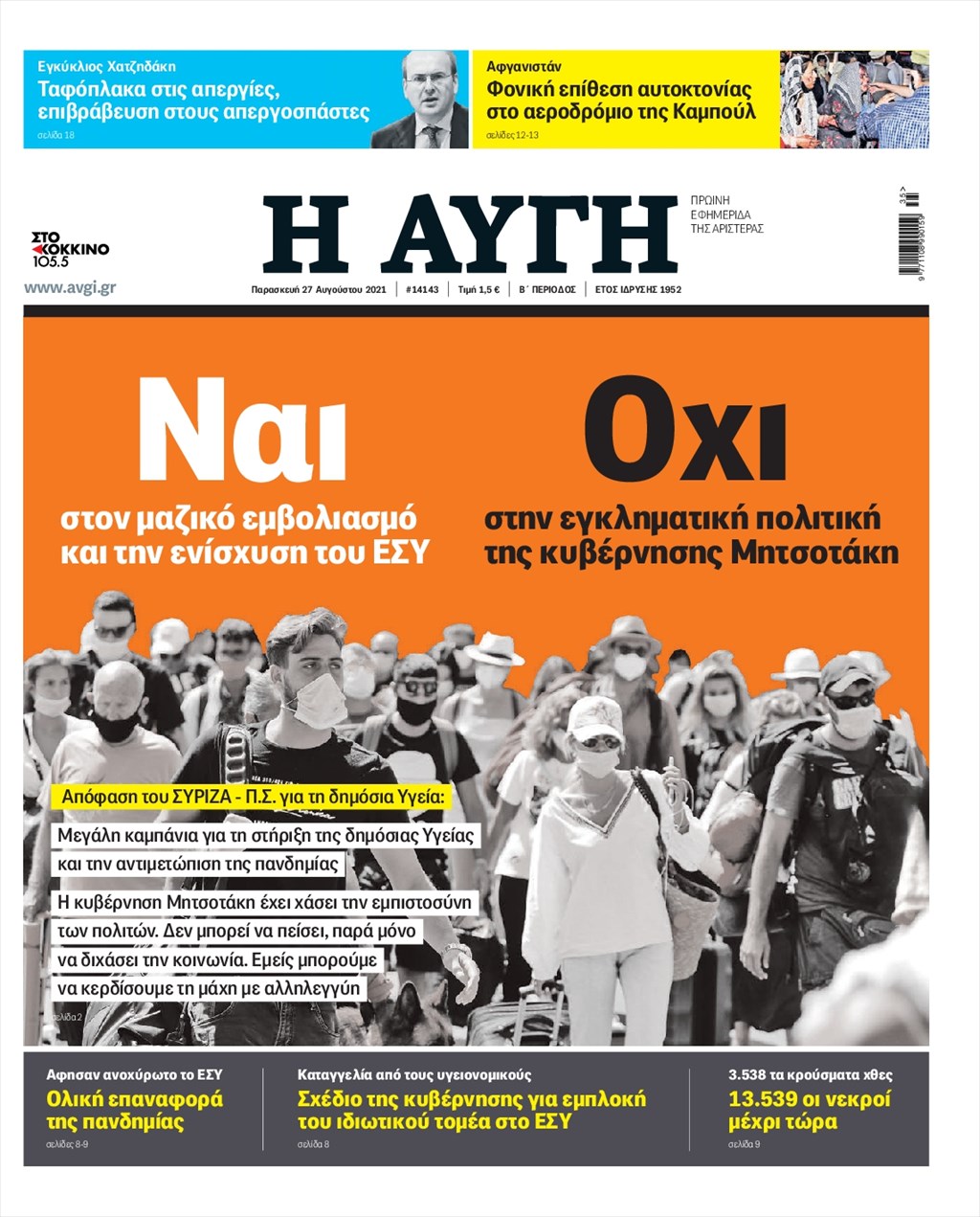 Τα πρωτοσέλιδα των εφημερίδων 27 Αυγούστου
