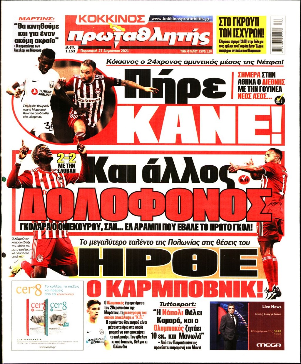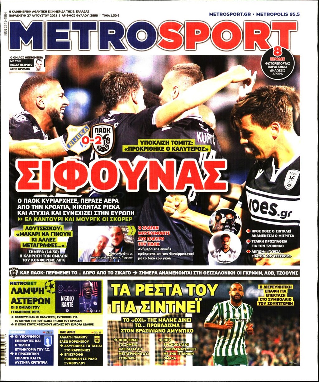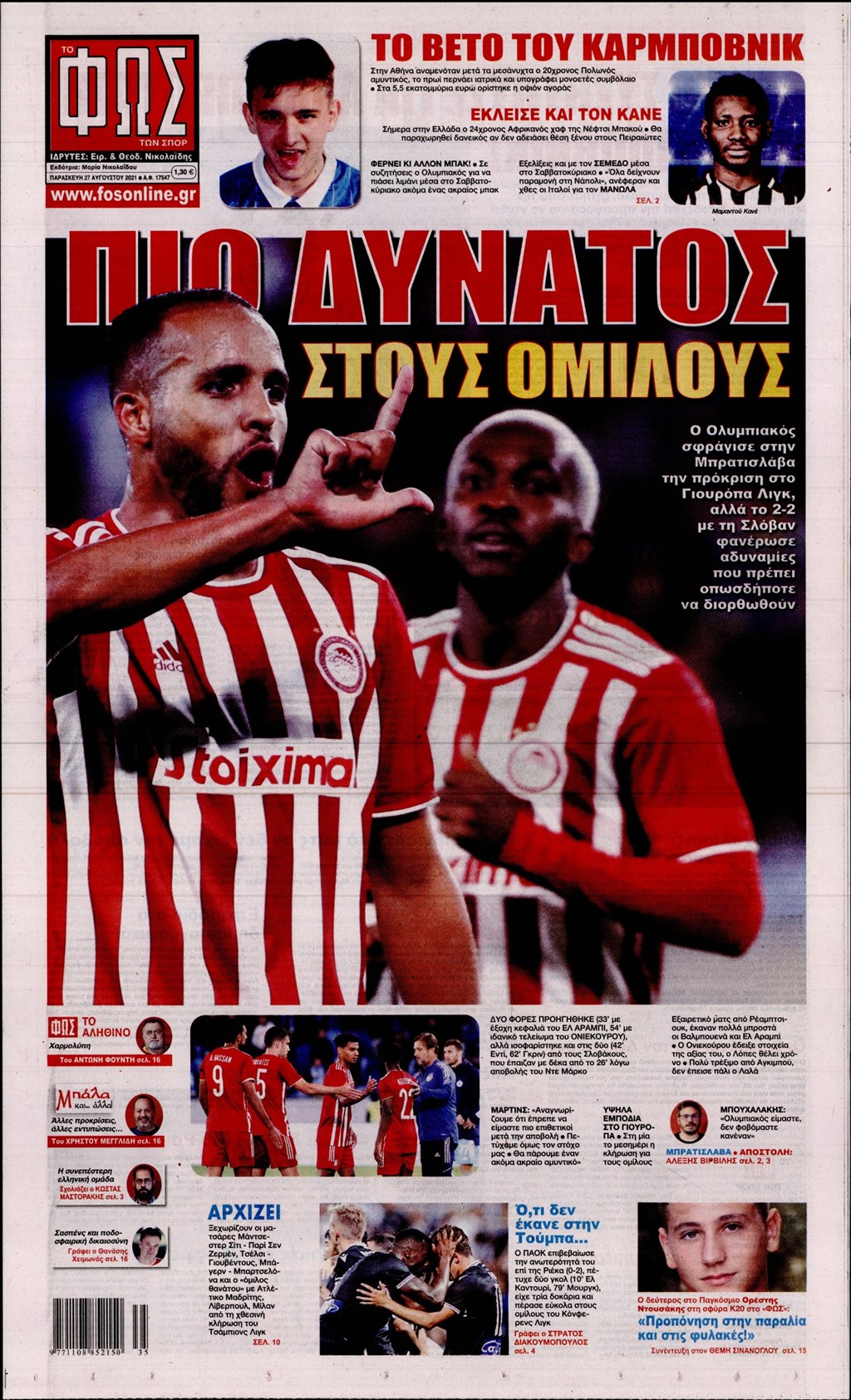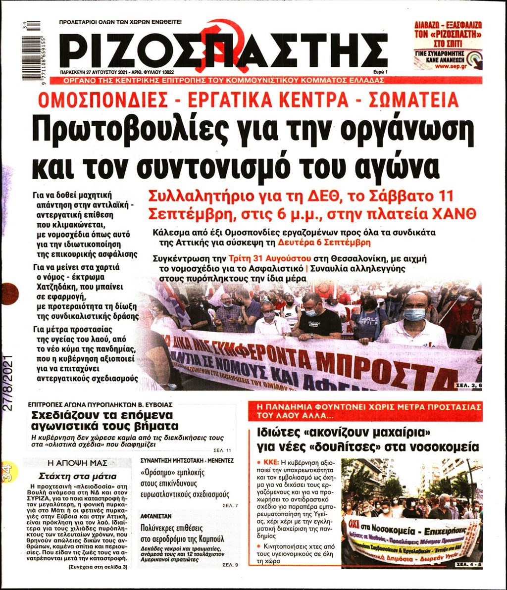 Τα πρωτοσέλιδα των εφημερίδων 27 Αυγούστου
