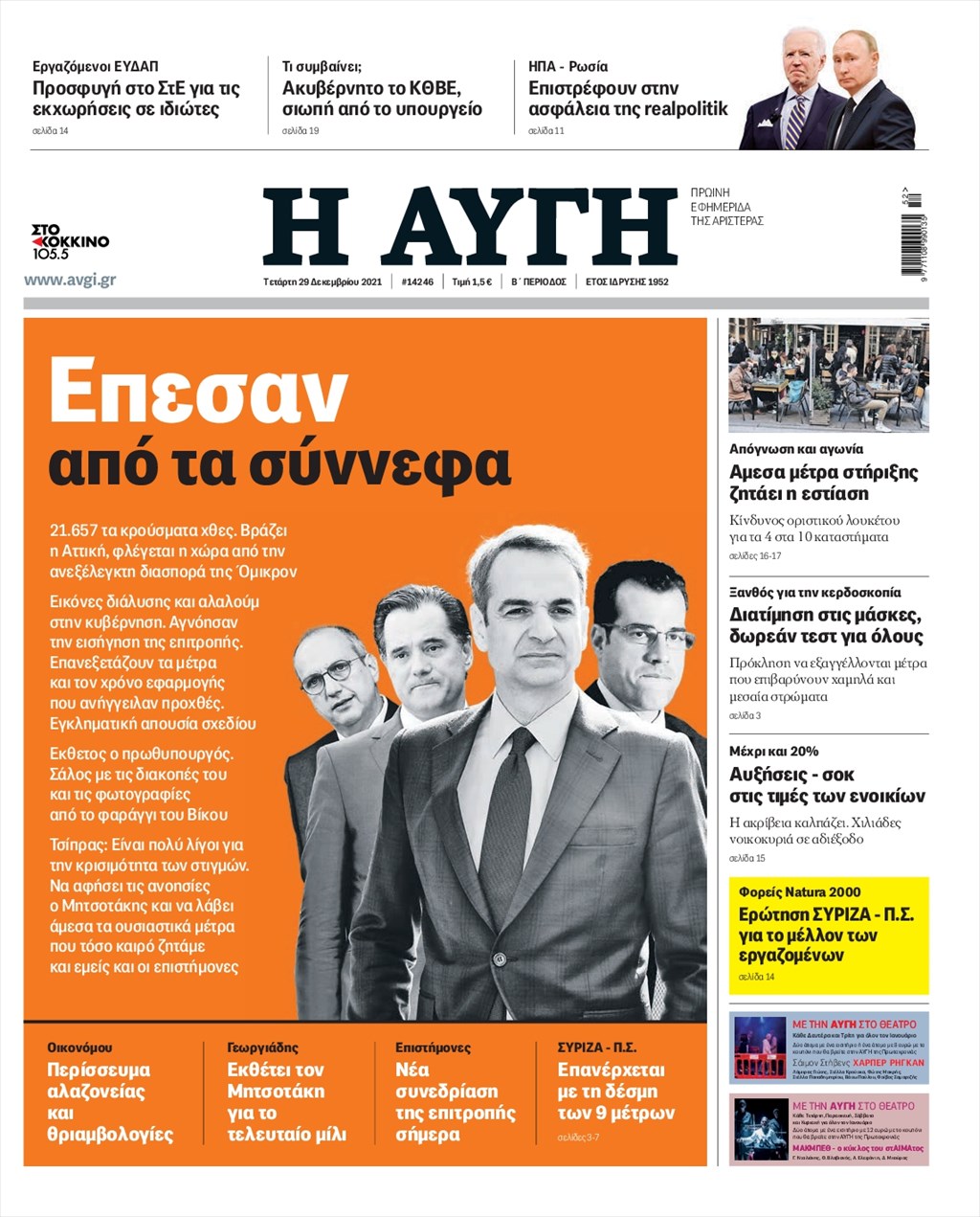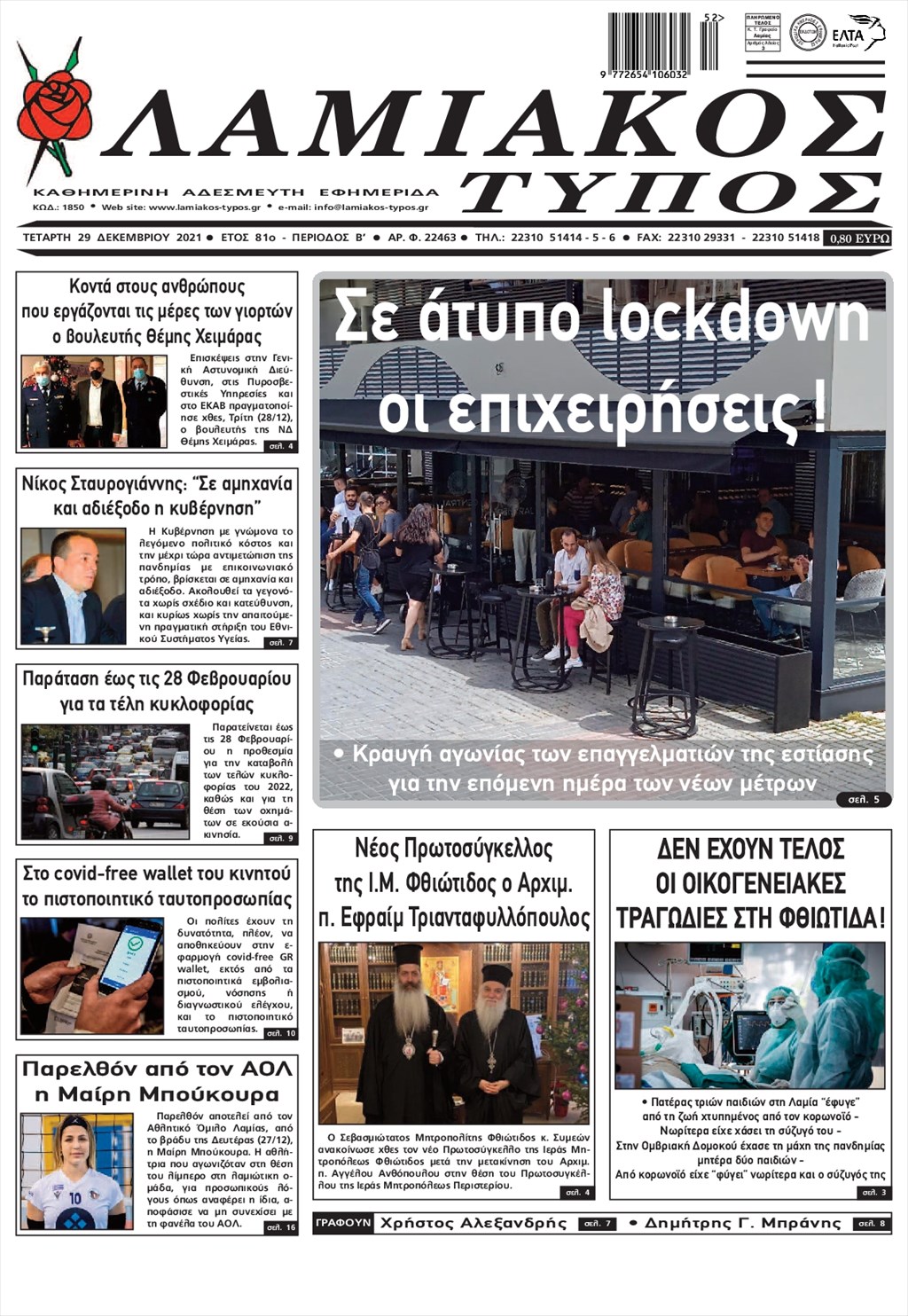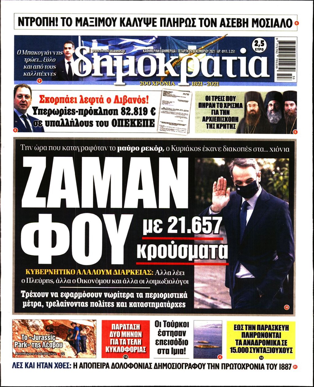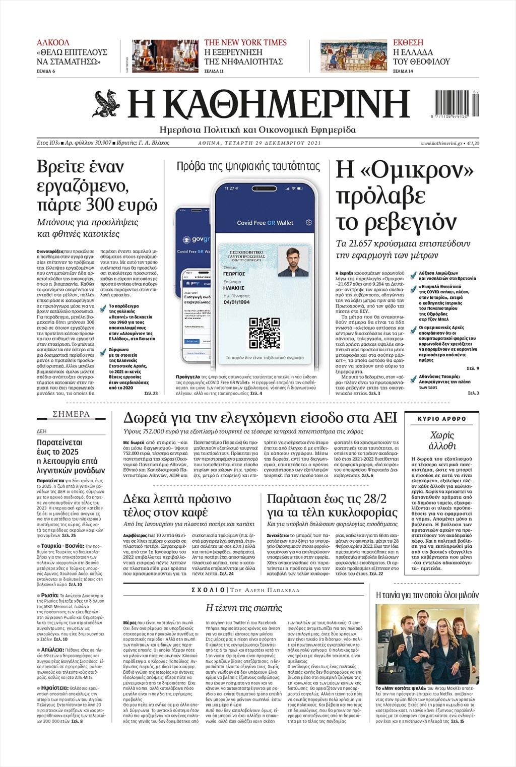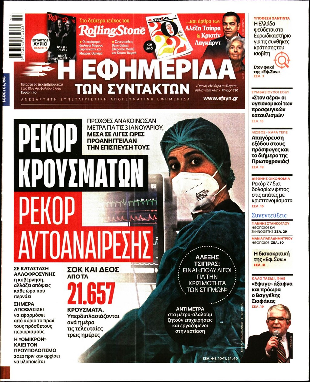 Τα πρωτοσέλιδα των εφημερίδων 29 Δεκεμβρίου