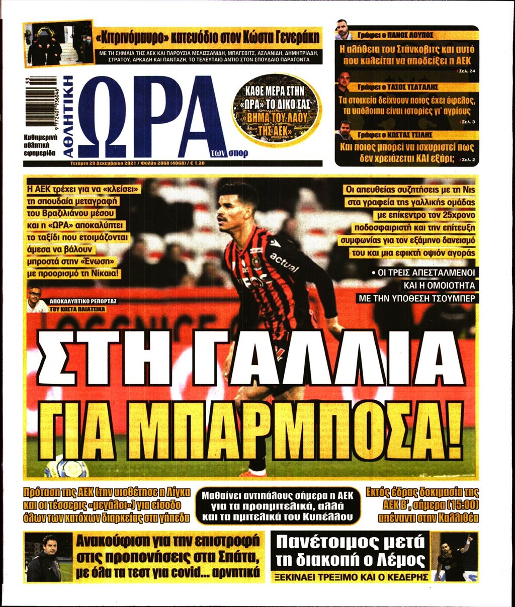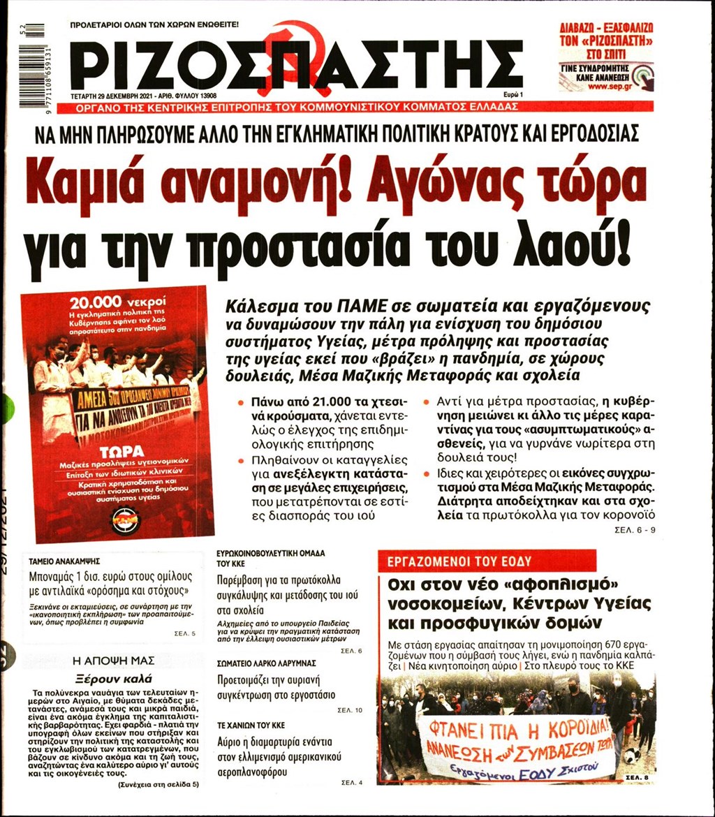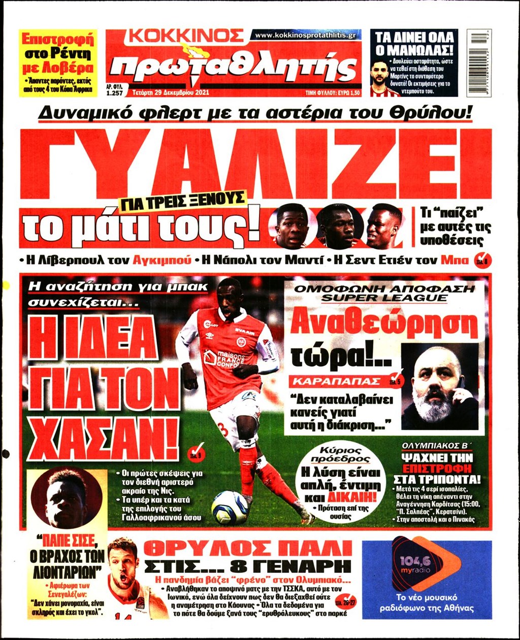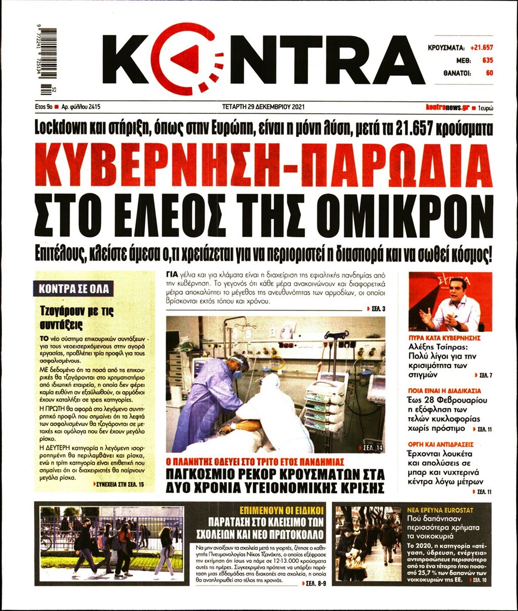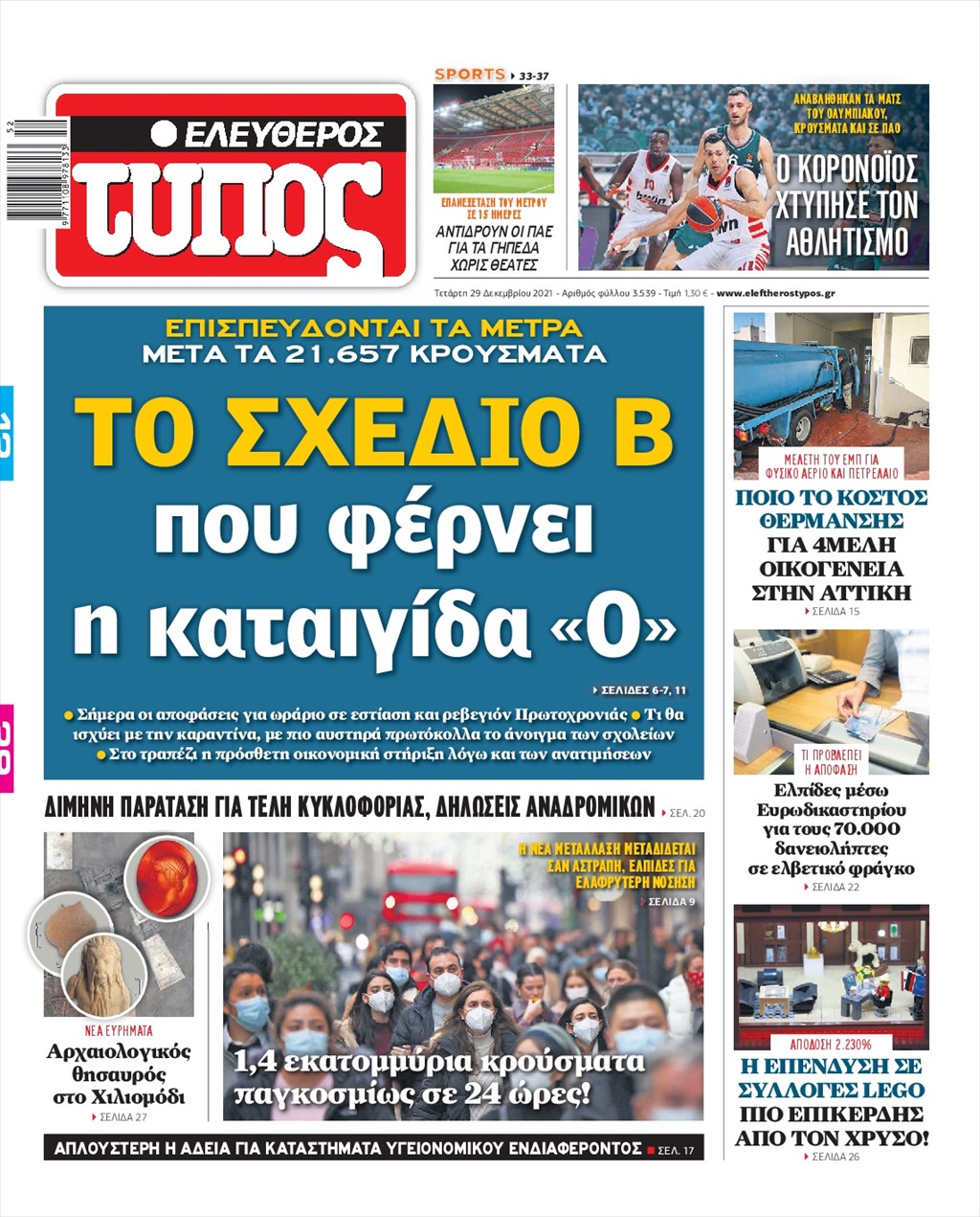Τα πρωτοσέλιδα των εφημερίδων 29 Δεκεμβρίου