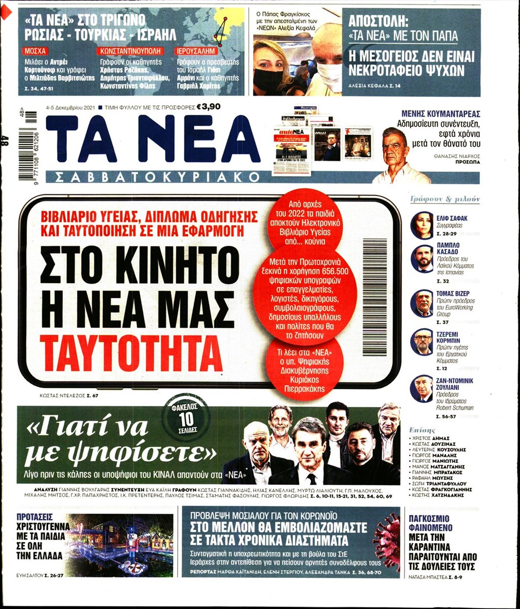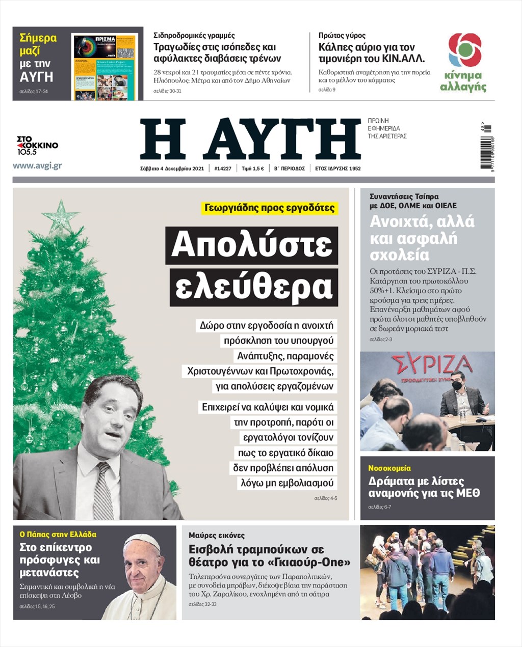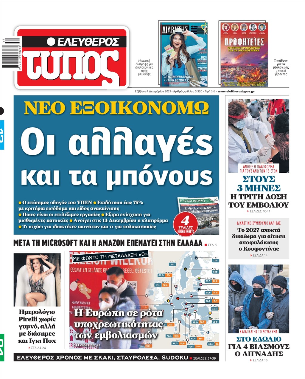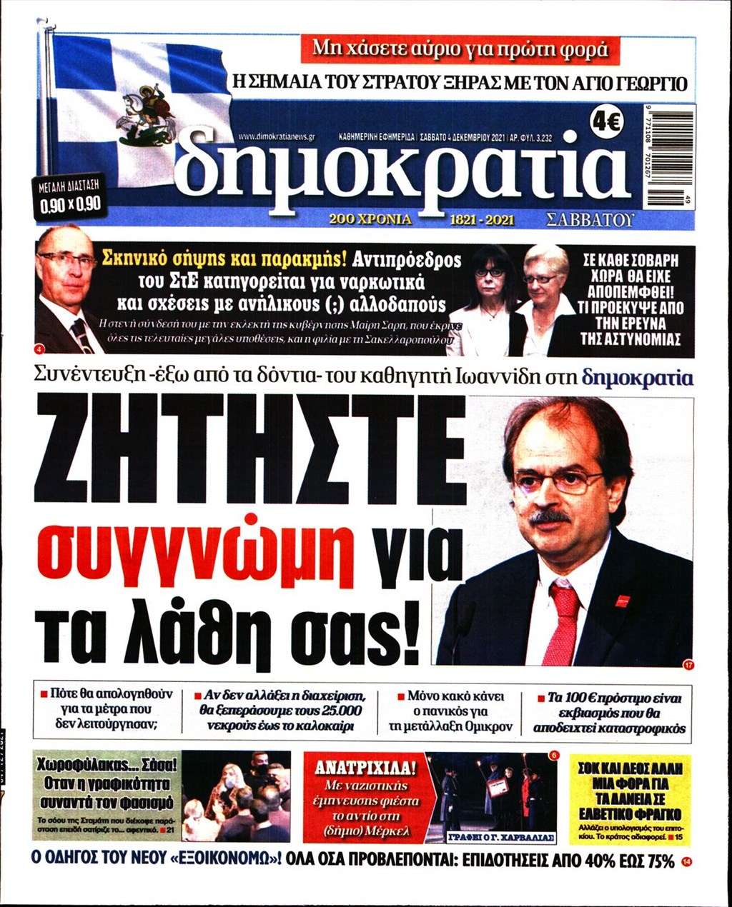 Τα πρωτοσέλιδα των εφημερίδων 4 Δεκεμβρίου