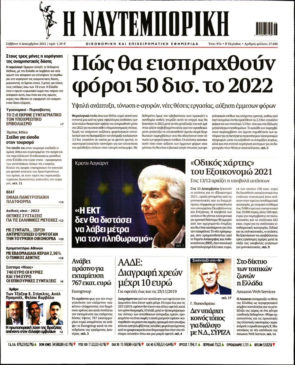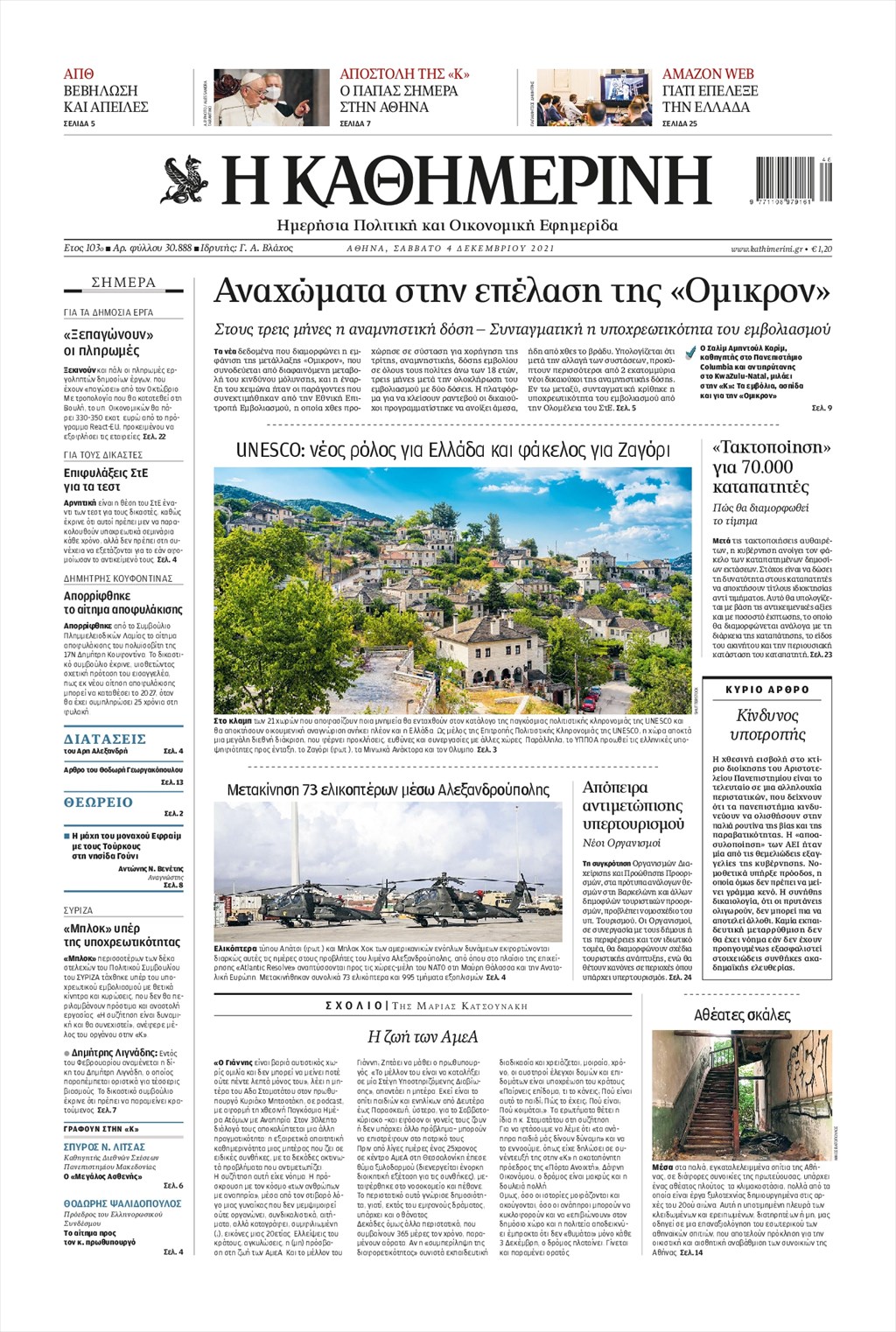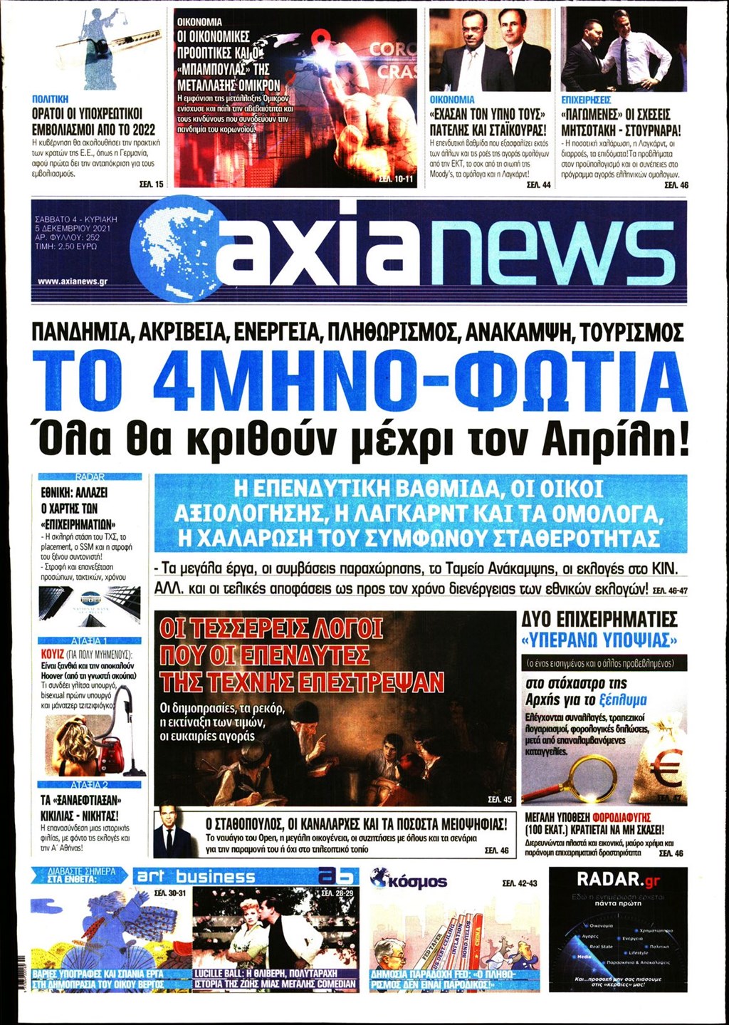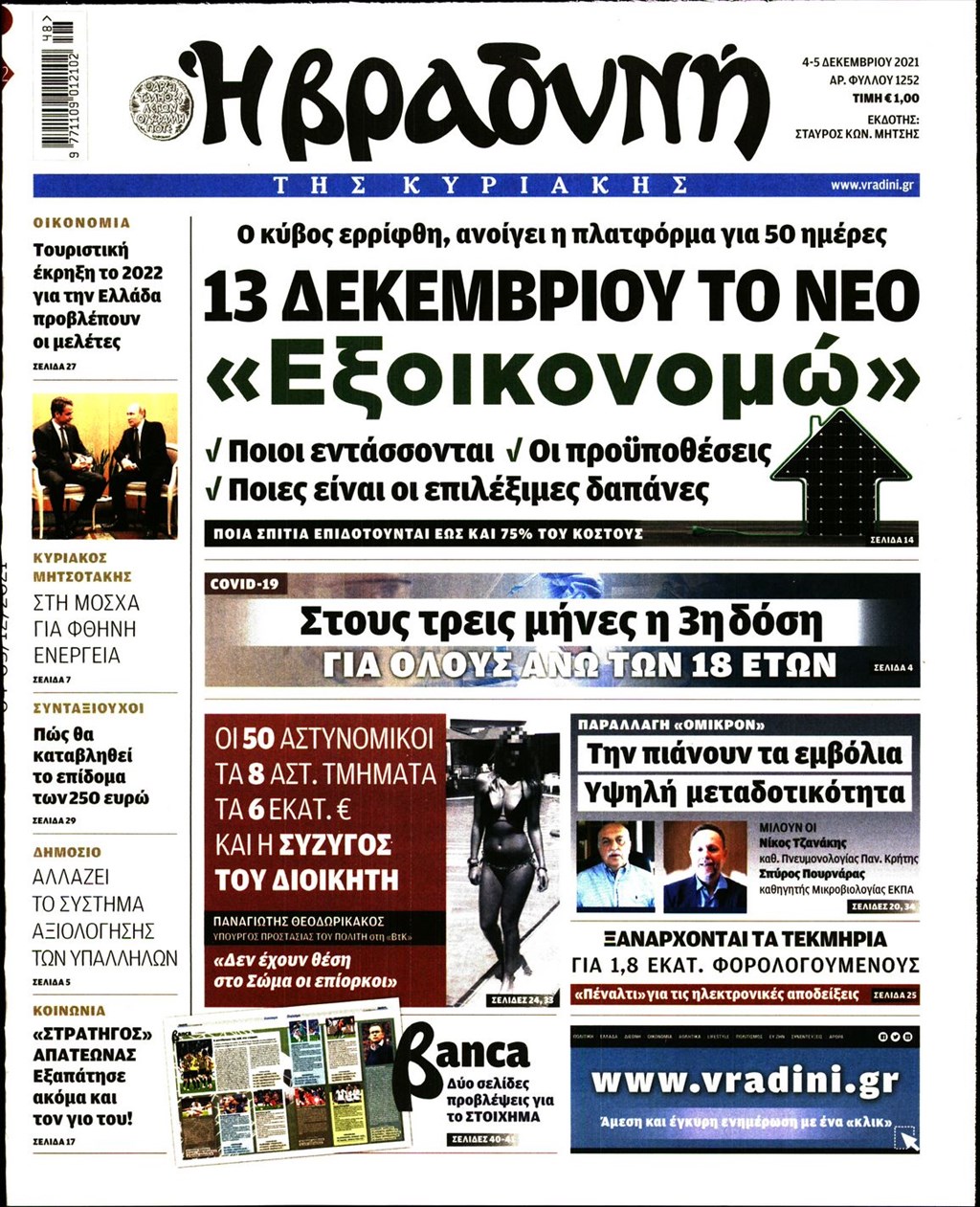 Τα πρωτοσέλιδα των εφημερίδων 4 Δεκεμβρίου