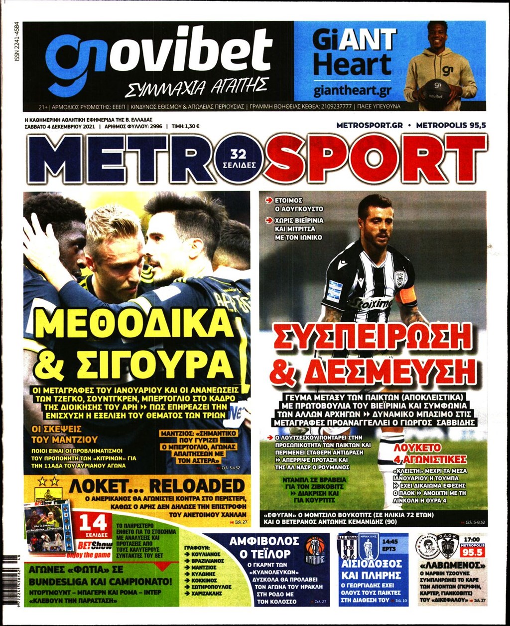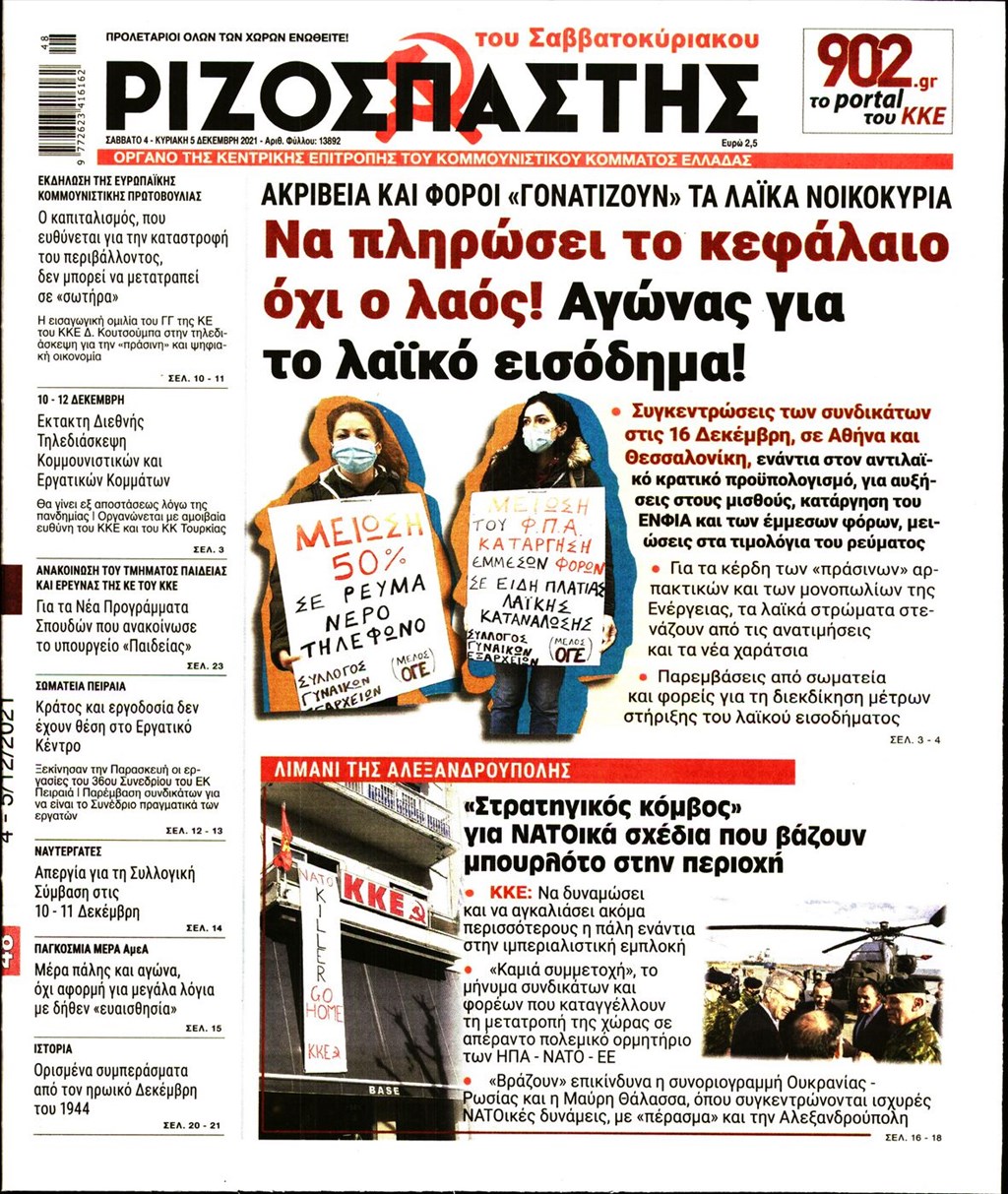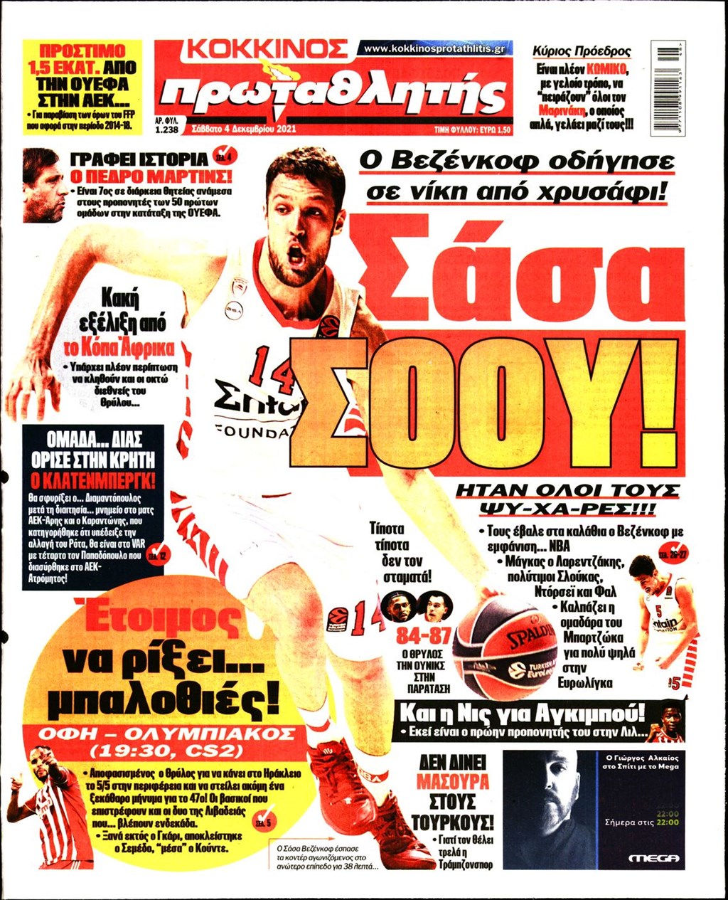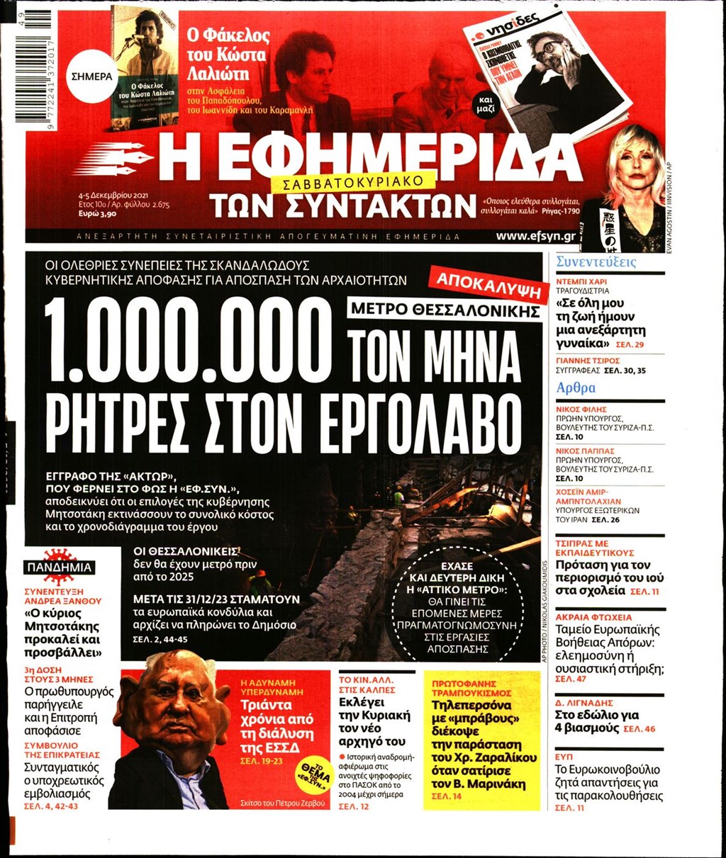 Τα πρωτοσέλιδα των εφημερίδων 4 Δεκεμβρίου