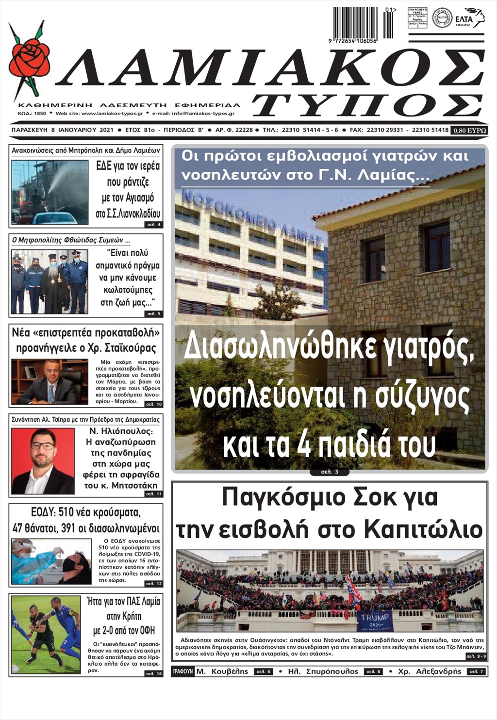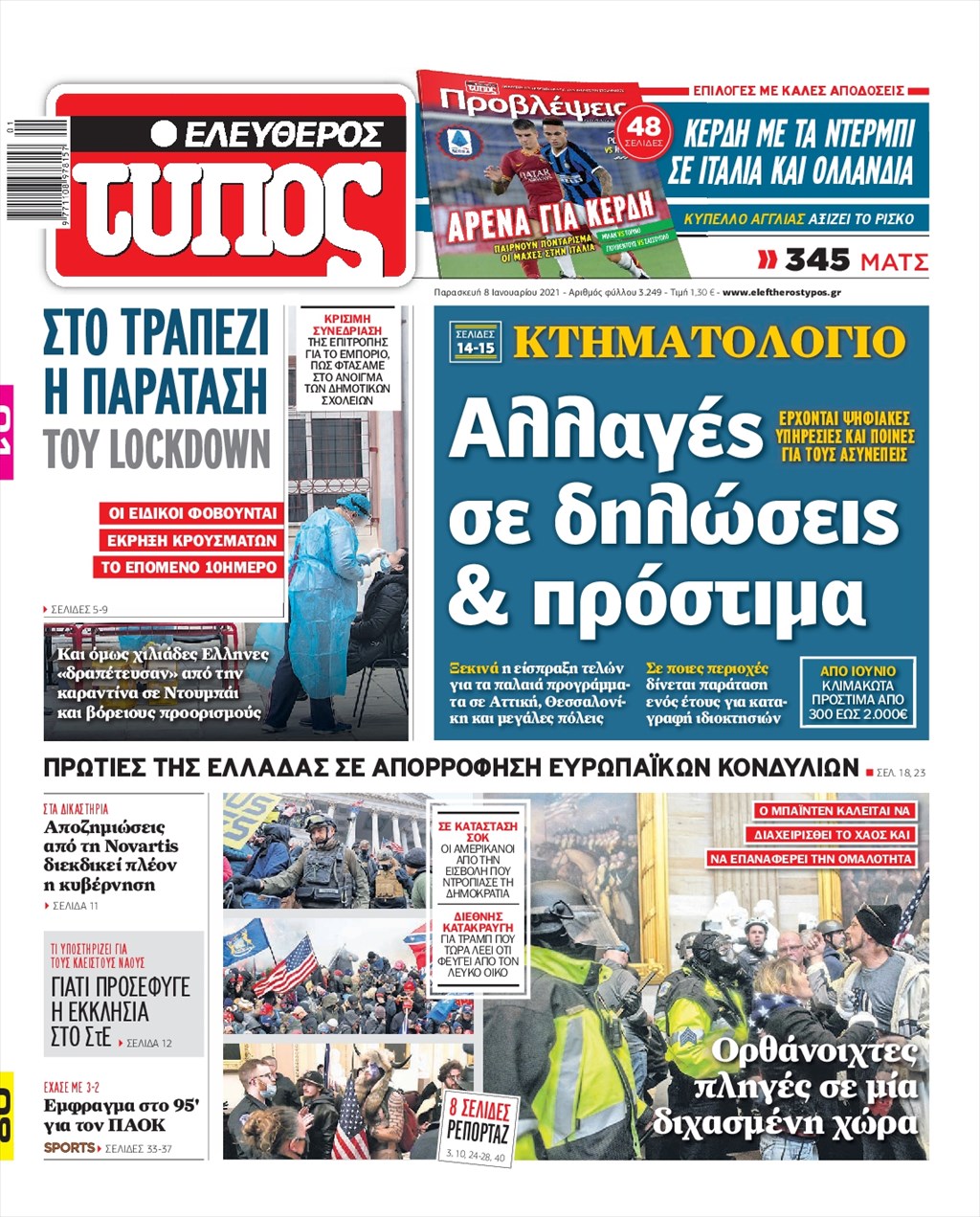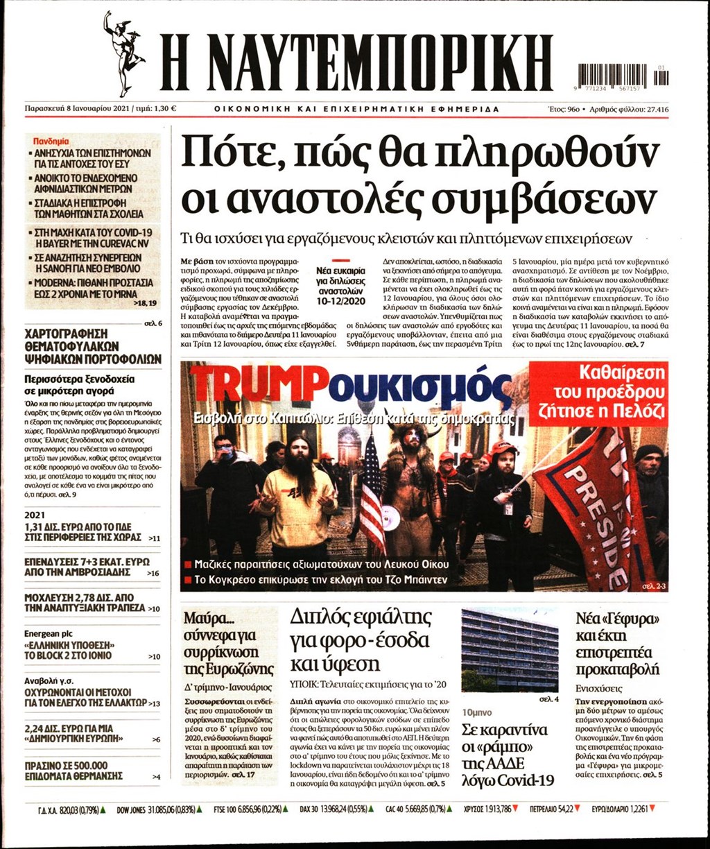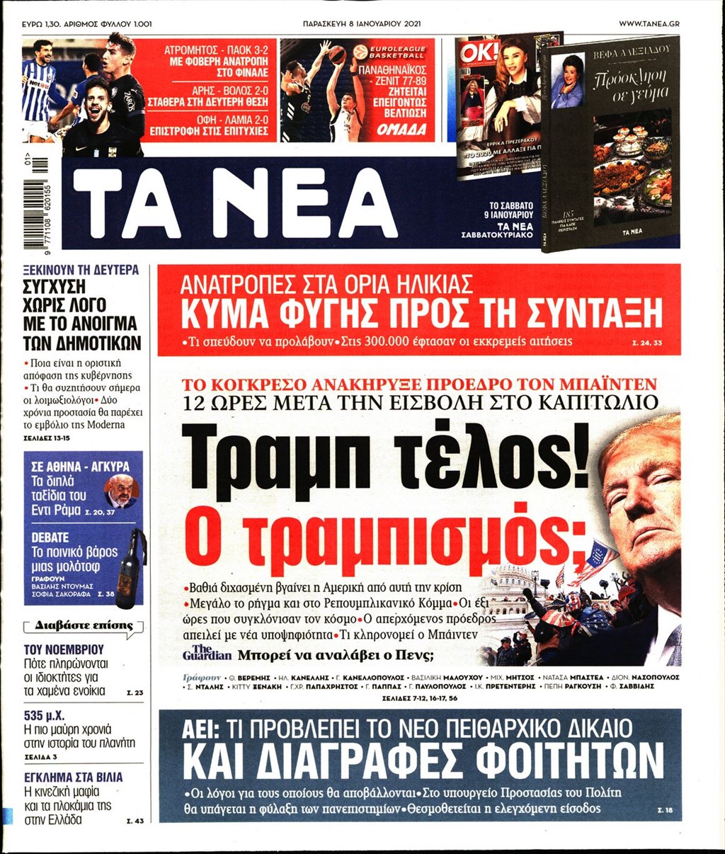 Τα πρωτοσέλιδα των εφημερίδων 8 Ιανουαρίου