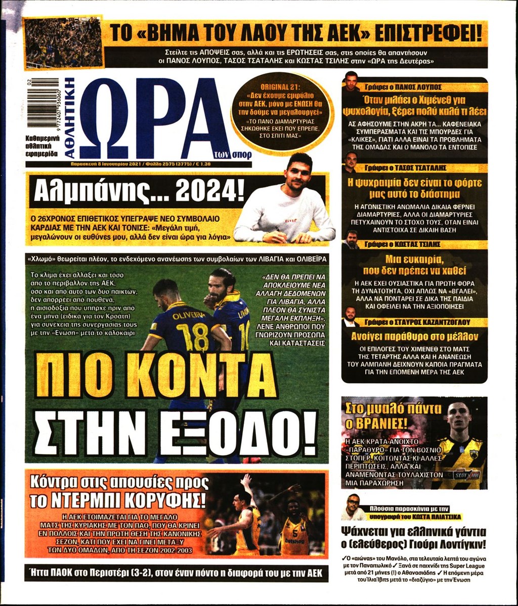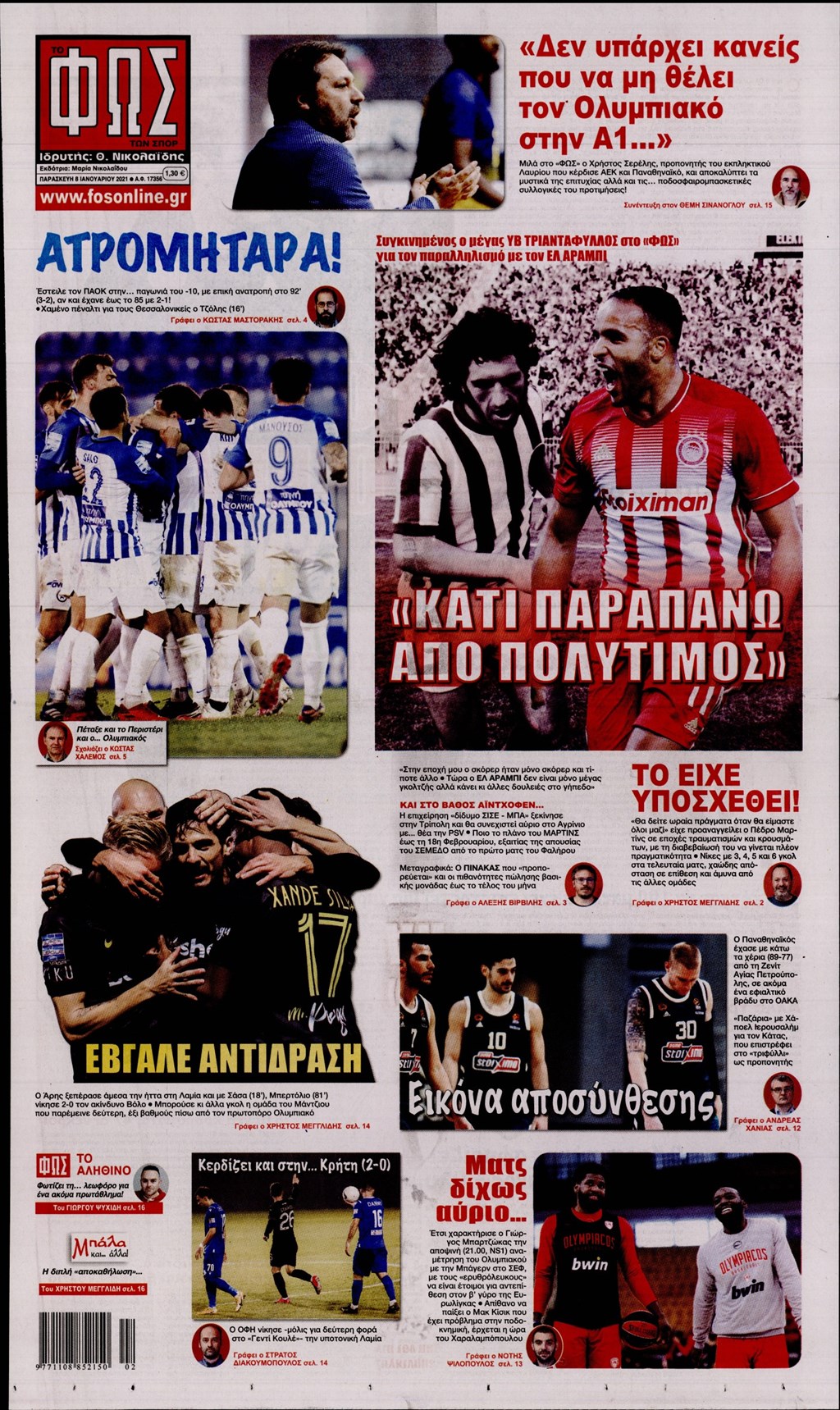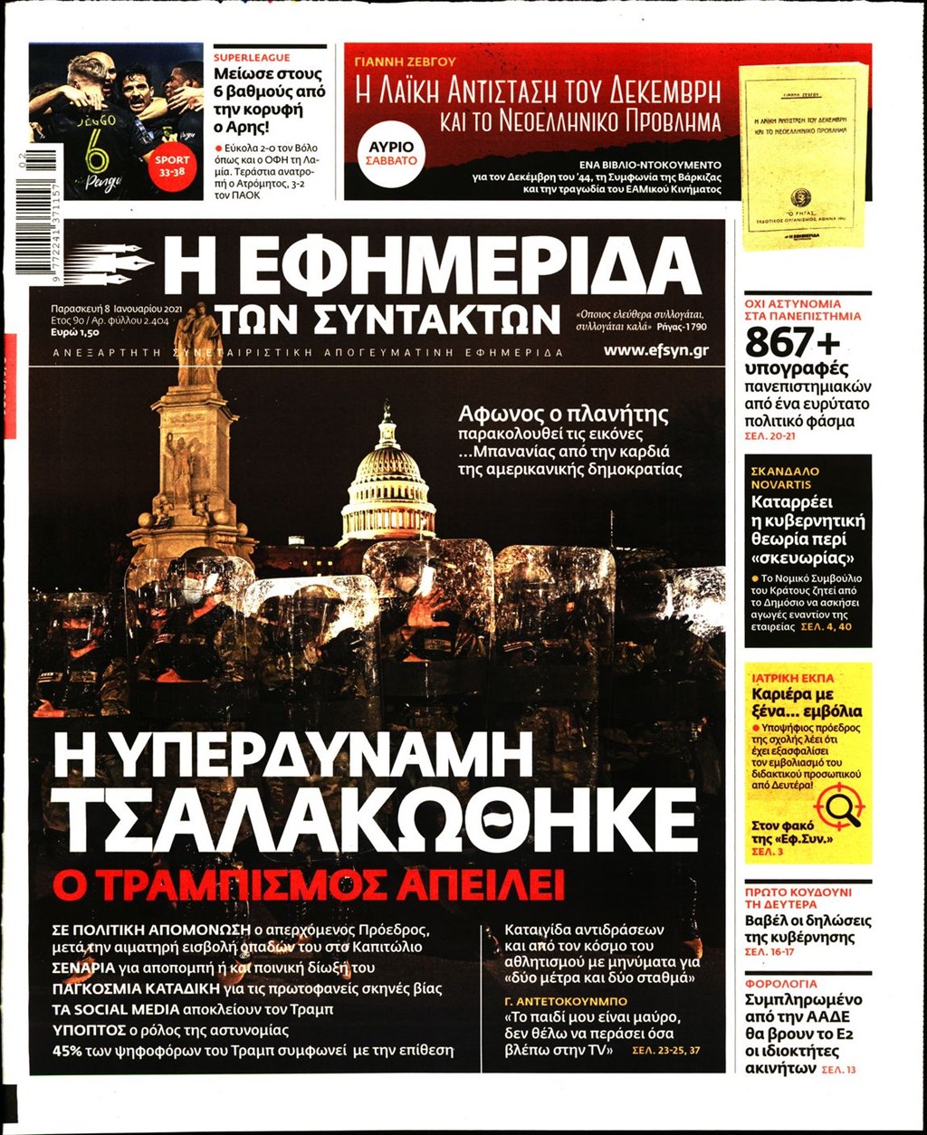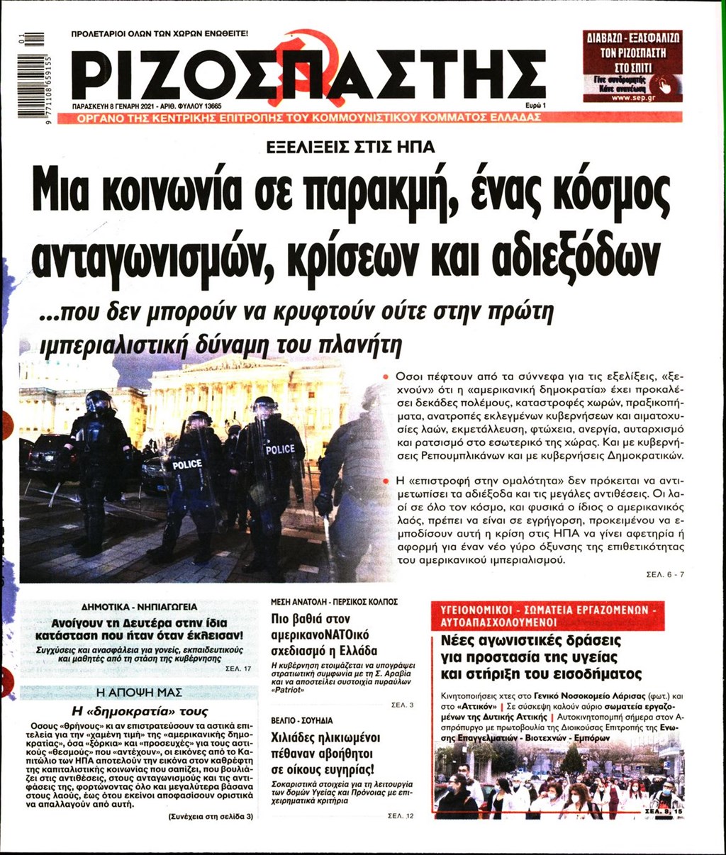Τα πρωτοσέλιδα των εφημερίδων 8 Ιανουαρίου