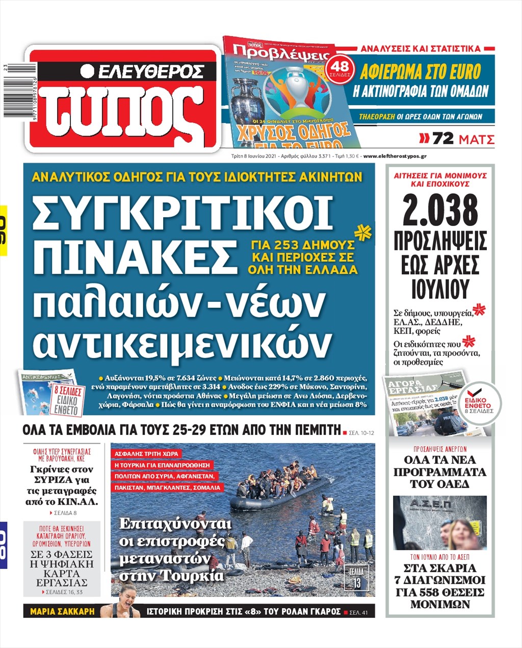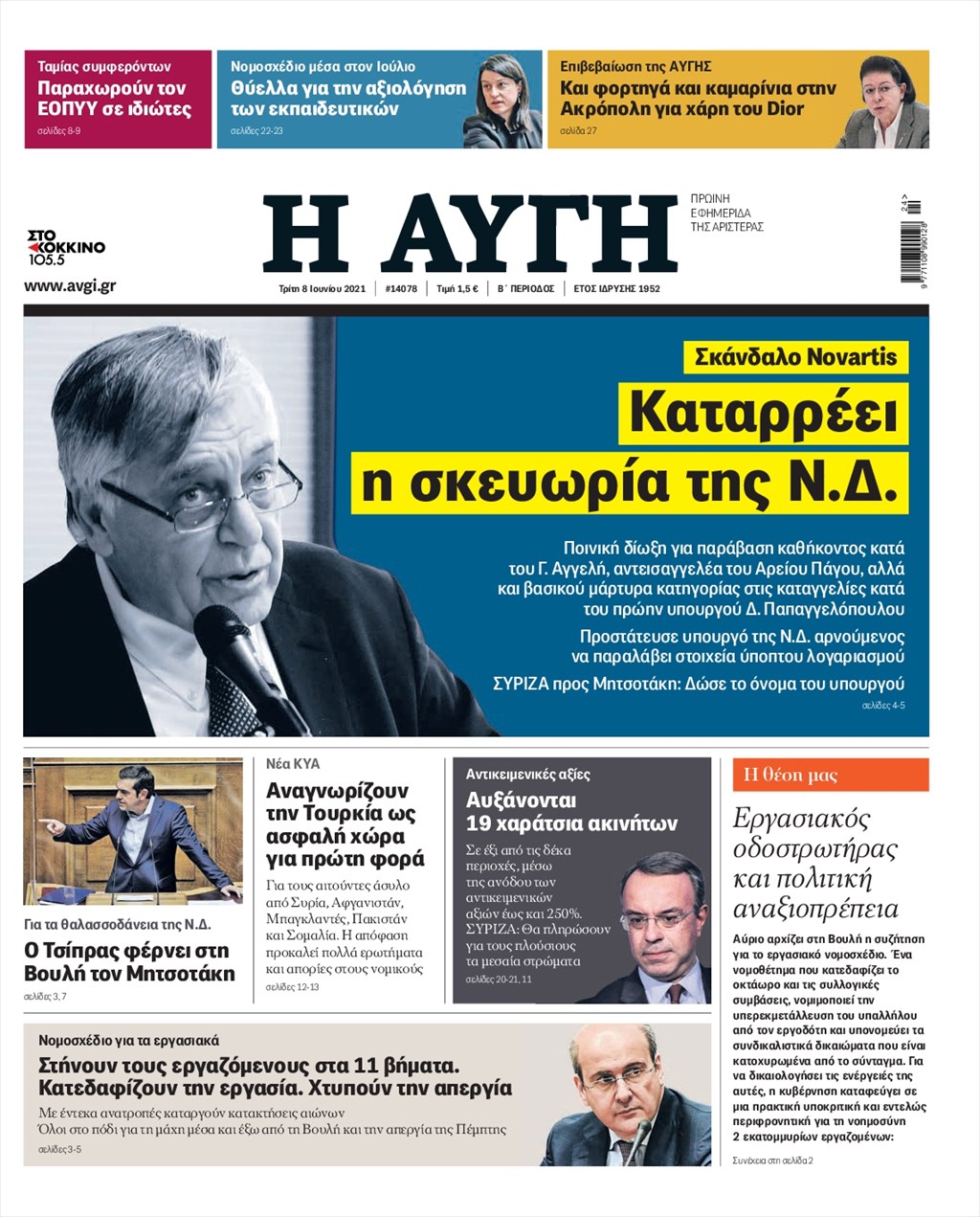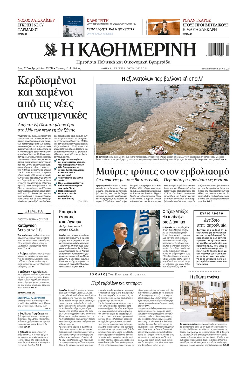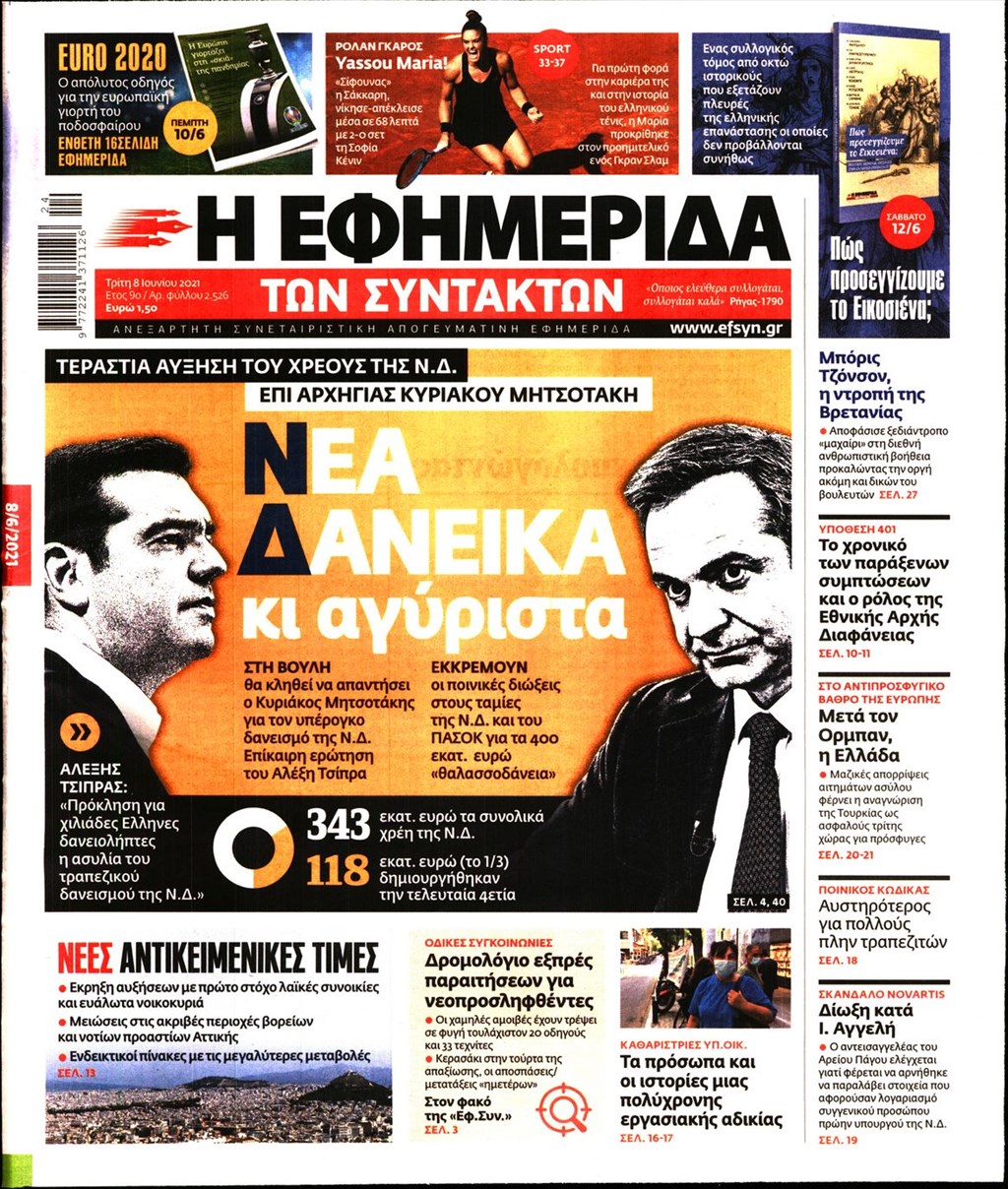 Τα πρωτοσέλιδα των εφημερίδων 8 Ιουνίου