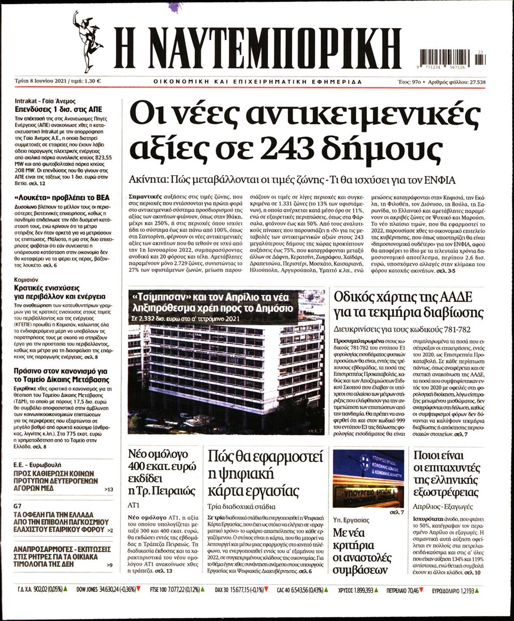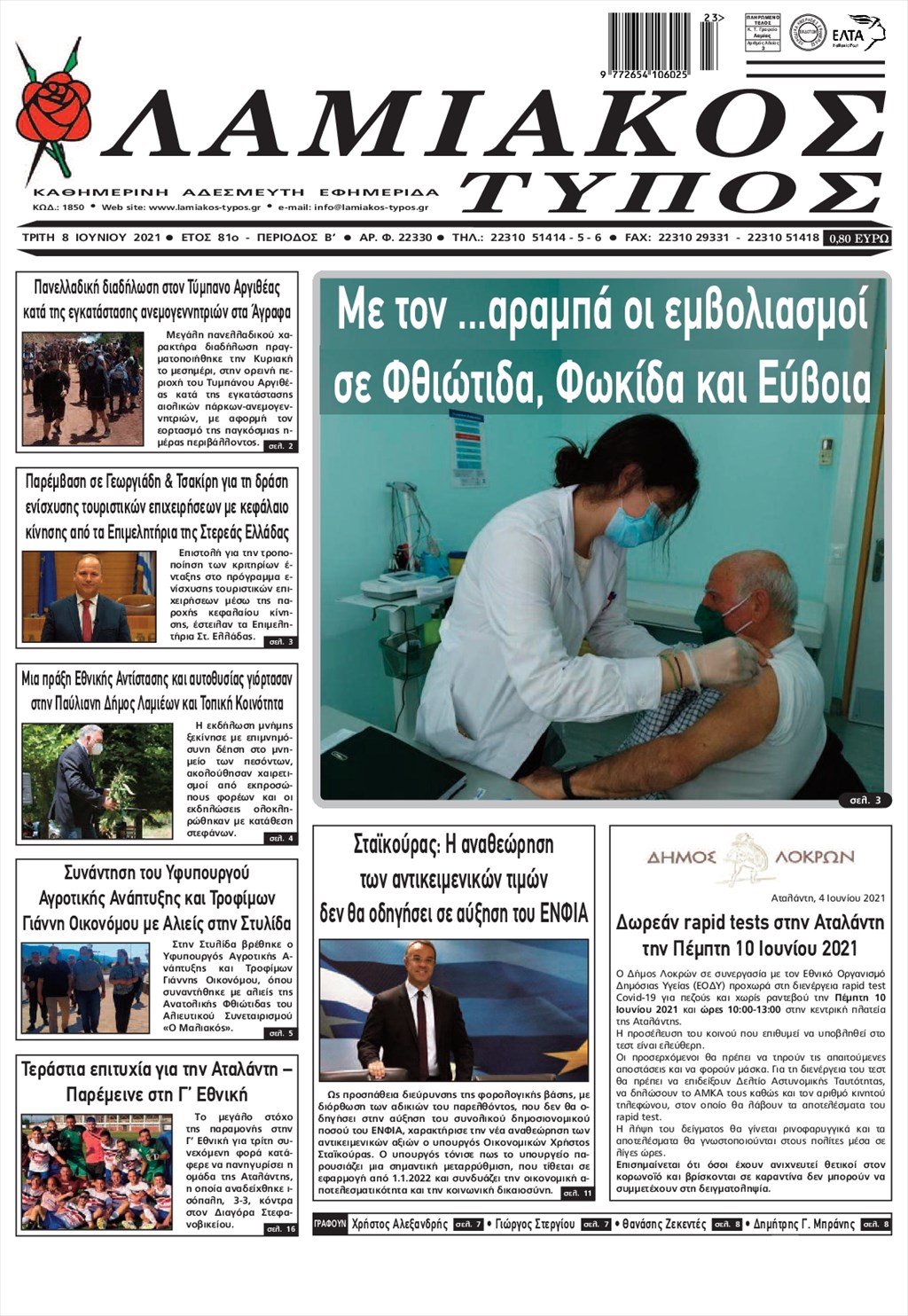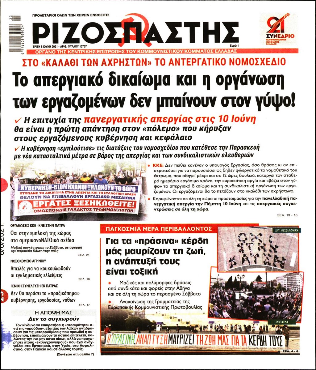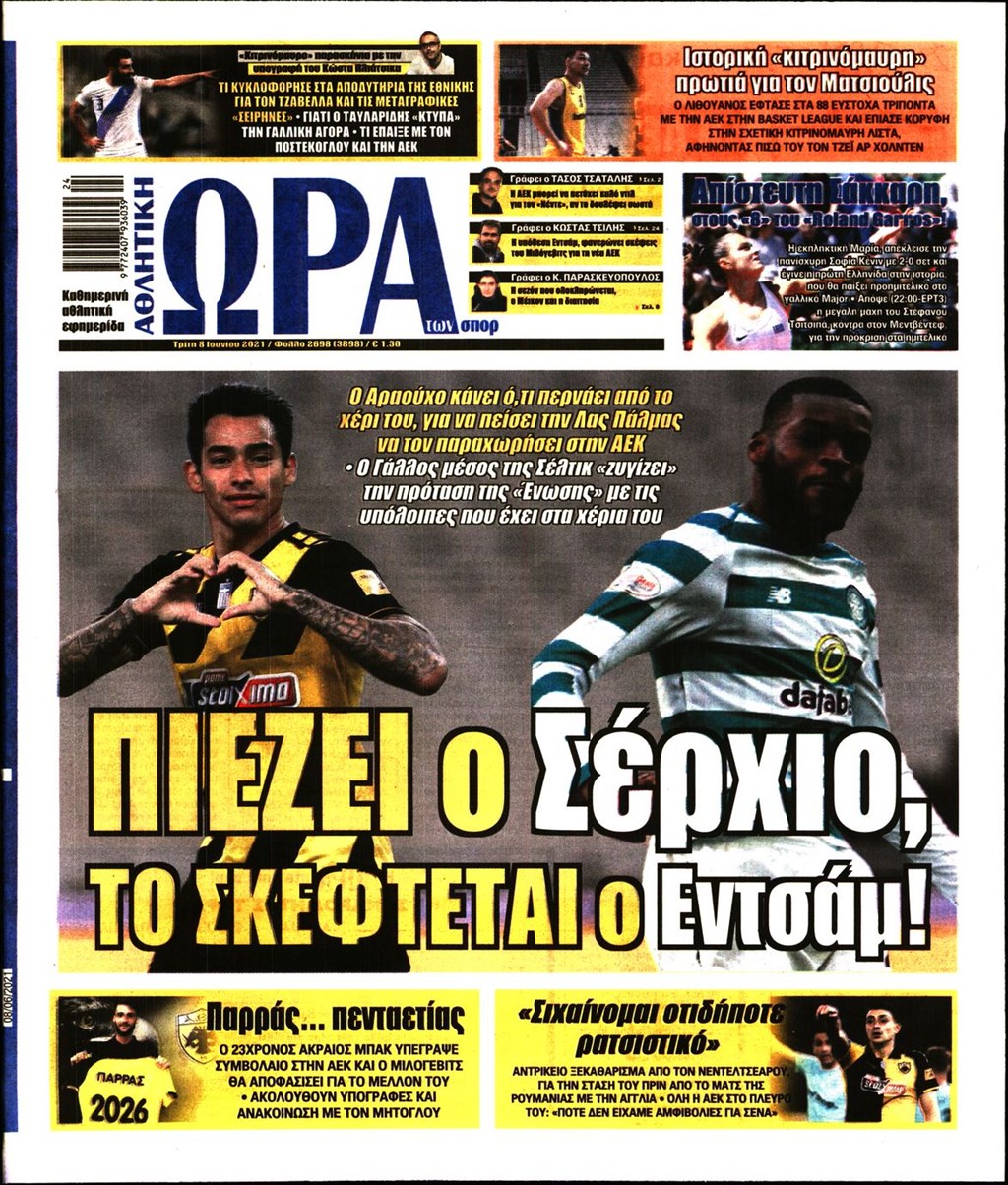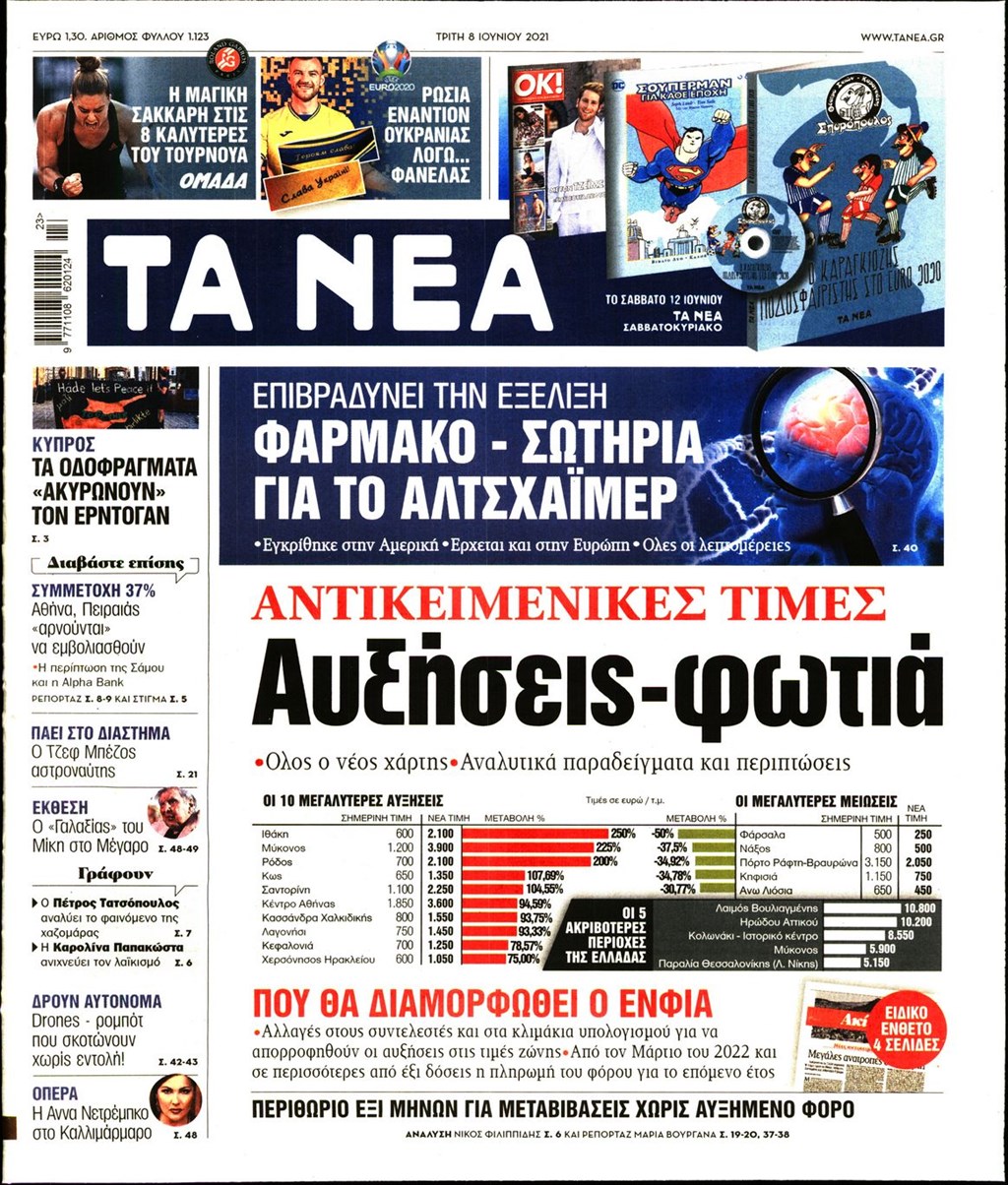 Τα πρωτοσέλιδα των εφημερίδων 8 Ιουνίου