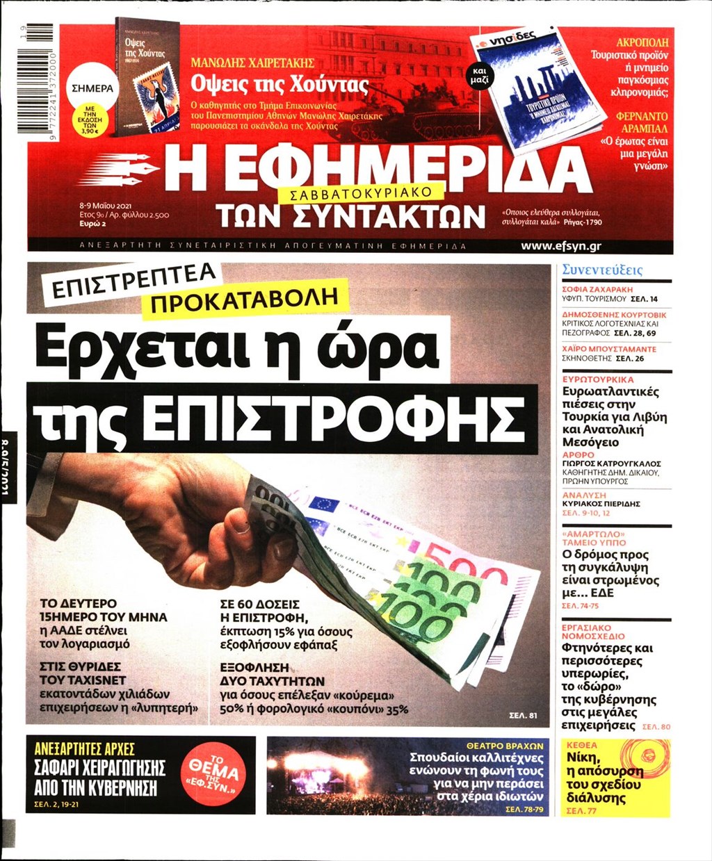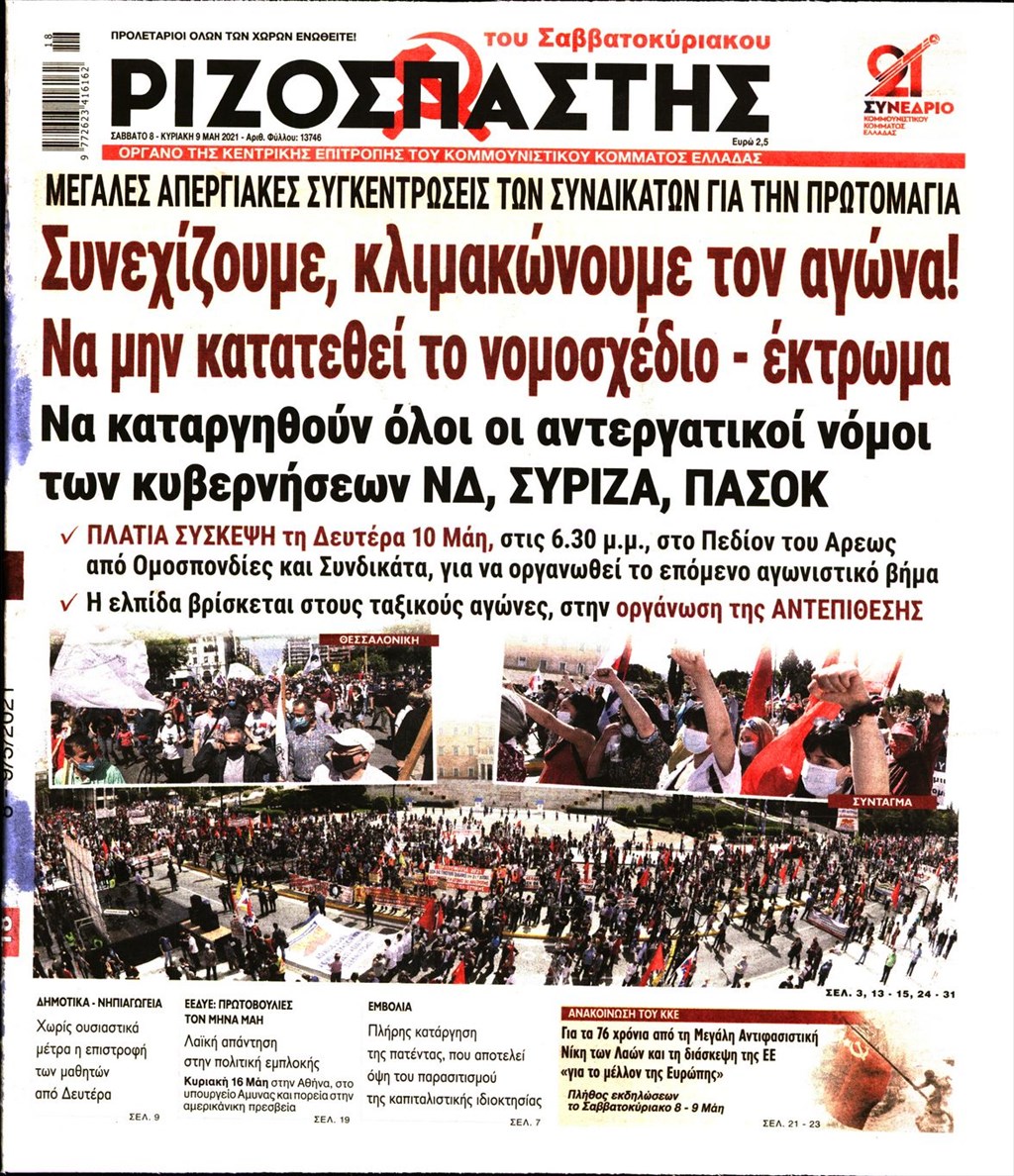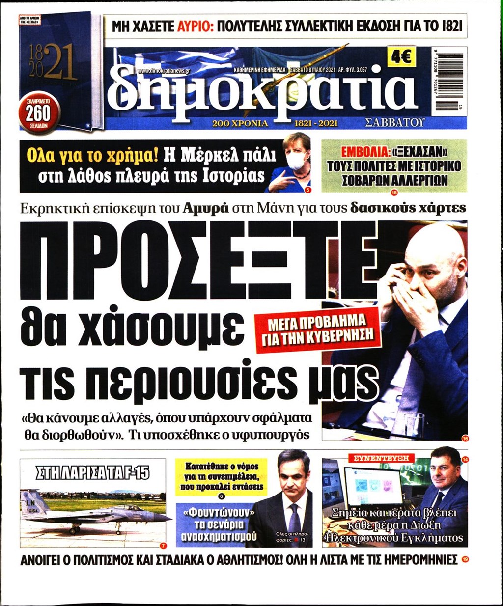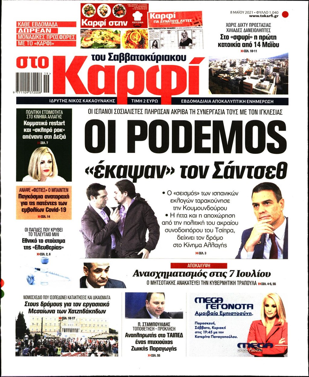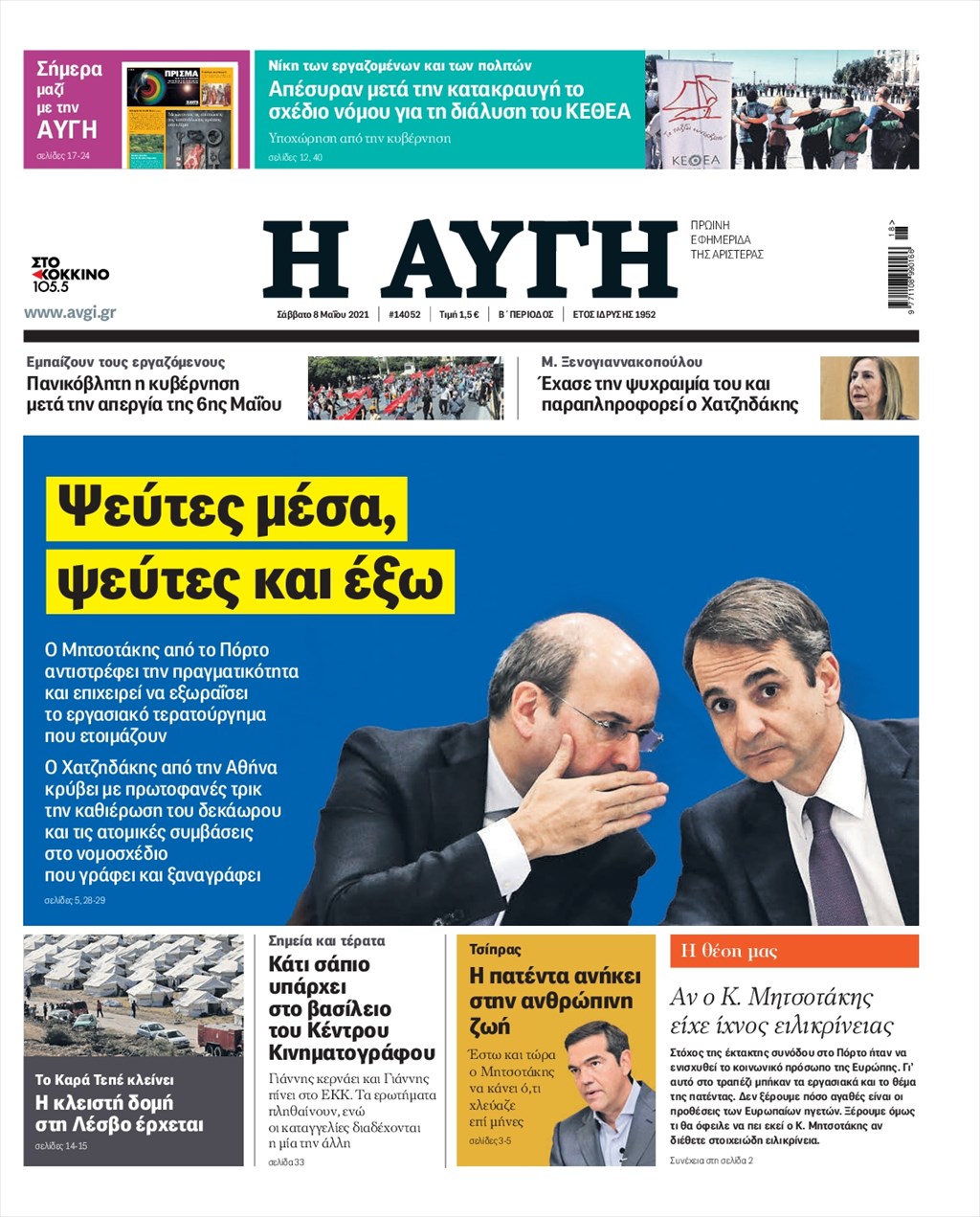 Τα πρωτοσέλιδα των εφημερίδων 8 Μαΐου